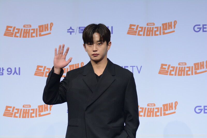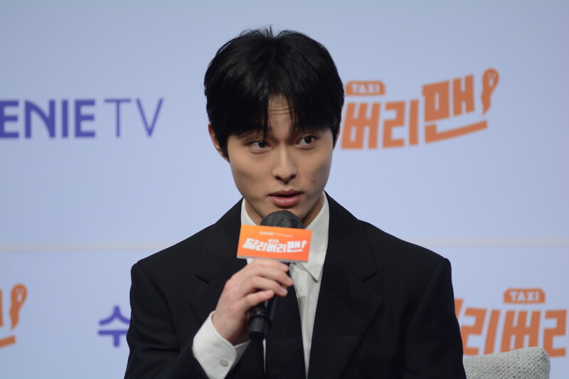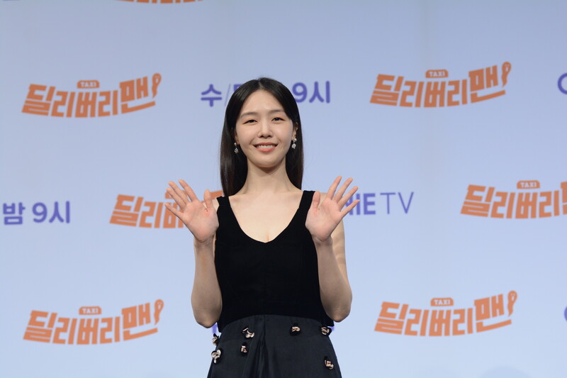 These photos taken during the press conference of the upcoming South Korean drama series "Delivery Man" provided by Genie TV show actress Bang Min-ah, Kim Min-seok, and Yoon Chan-young posing for their individual, group photos while answering questions throughout the session.