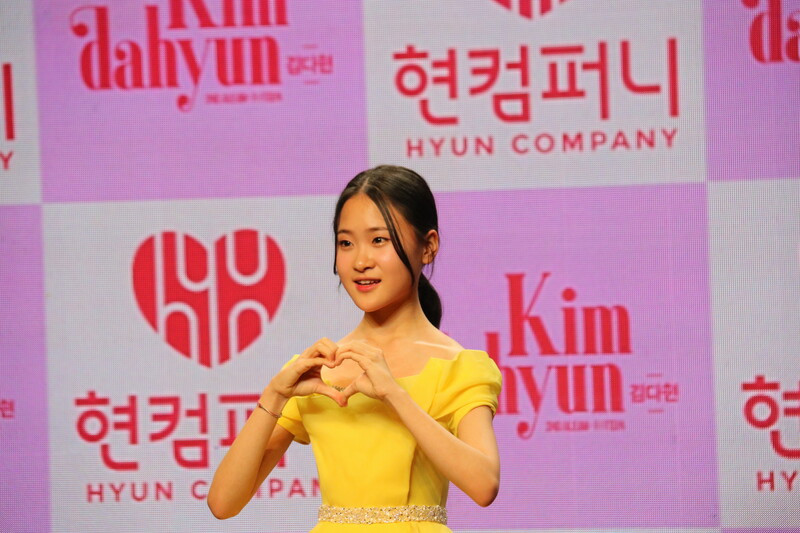 These photos show the South Korean singer Kim Da-hyun at the press showcase of her 2nd LP "Fifteen."