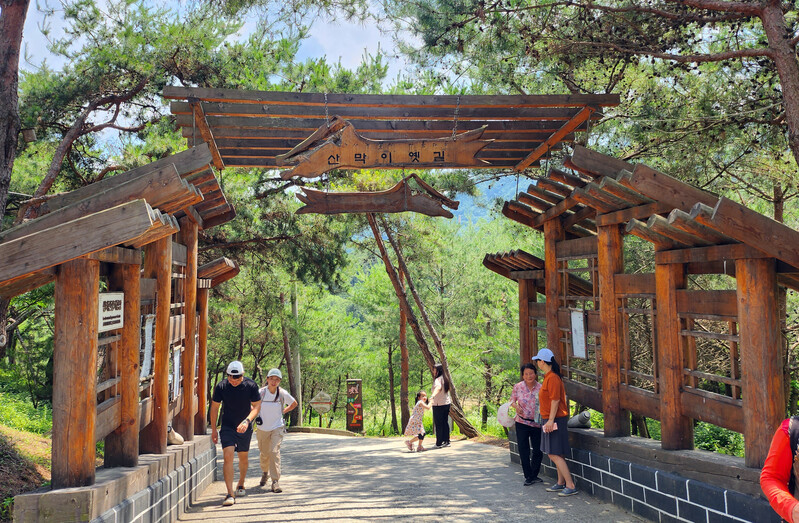 Sanmagiyet-gil is an old trail that leads to the mountain village Sanmaki. A cruise ferry was waiting on the left of the trail to take visitors to the Yeonhahyup Cloud Bridge.