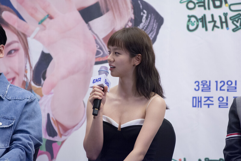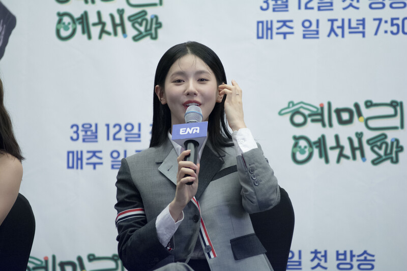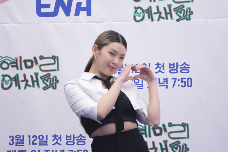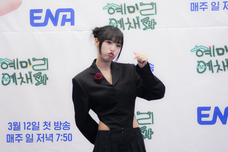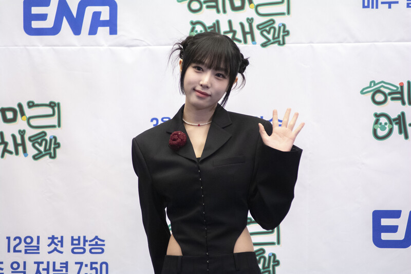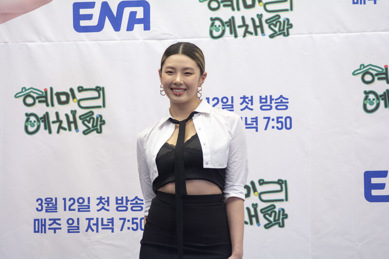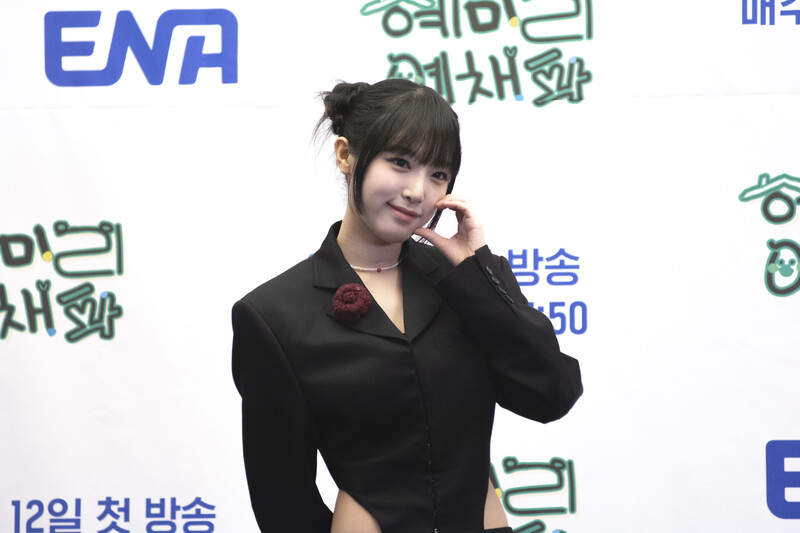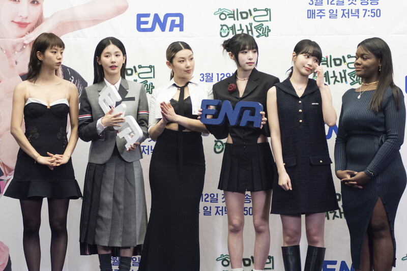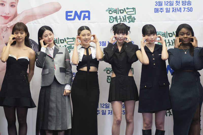 These photos taken during the press conference of the upcoming variety show of ENA HyeMiLeeYeChaePa show members Hyeri, Miyeon, Leejung, Yena, Kim Chaewon and Patricia.