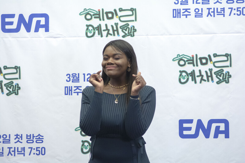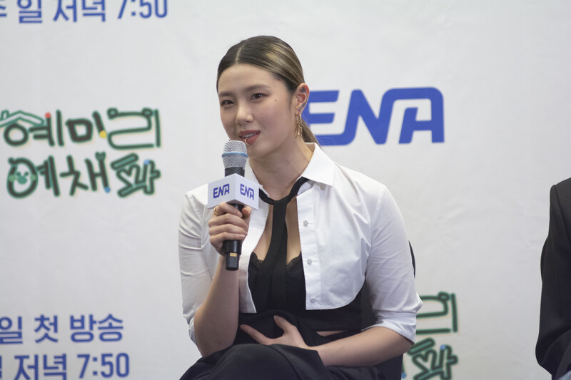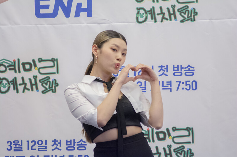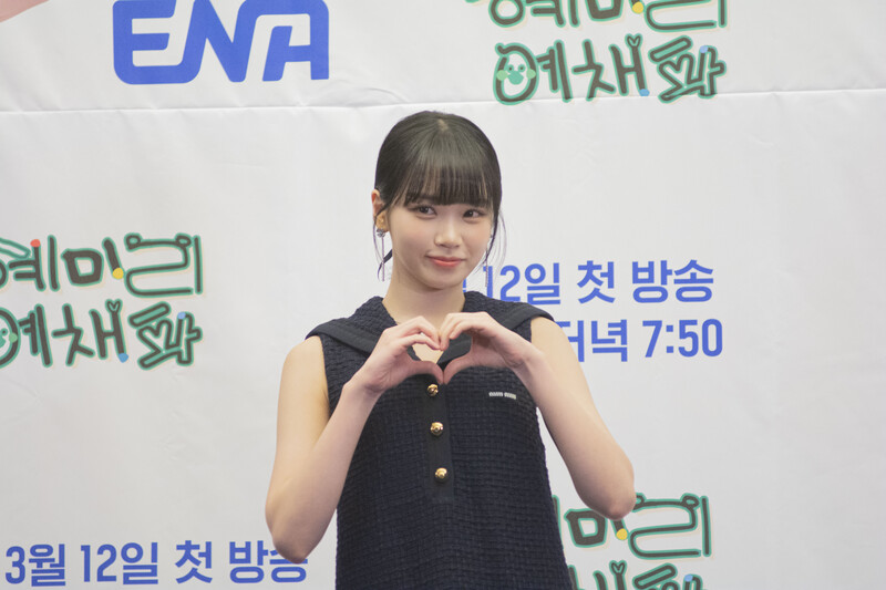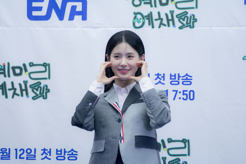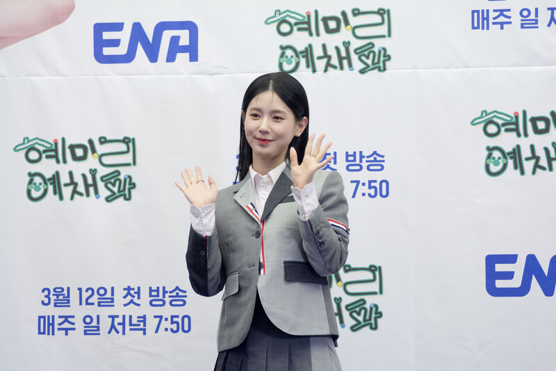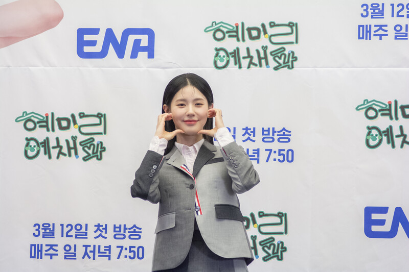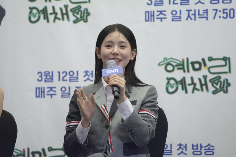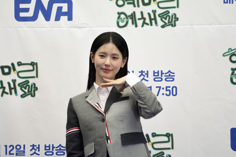 These photos taken during the press conference of the upcoming variety show of ENA HyeMiLeeYeChaePa show members Hyeri, Miyeon, Leejung, Yena, Kim Chaewon and Patricia.
