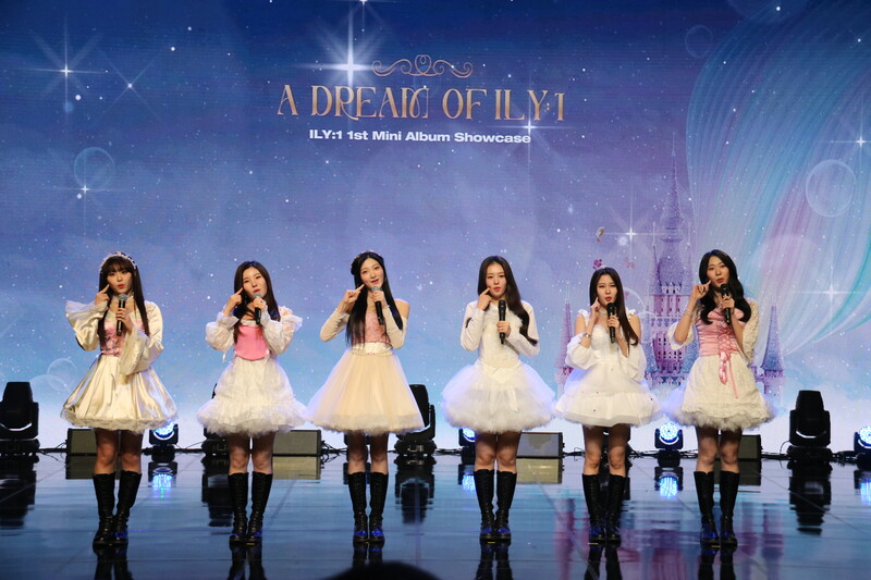These photos, taken during the media showcase of Rookie K-pop girl group Ily:1 show members Hana, Ara, Rona, Ririka, Nayu, and Elva. Throughout the media showcase, members participated in individual, group photo session, question and answer session and performed their title track "Twinkle Twinkle."