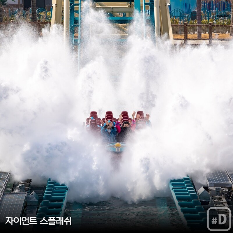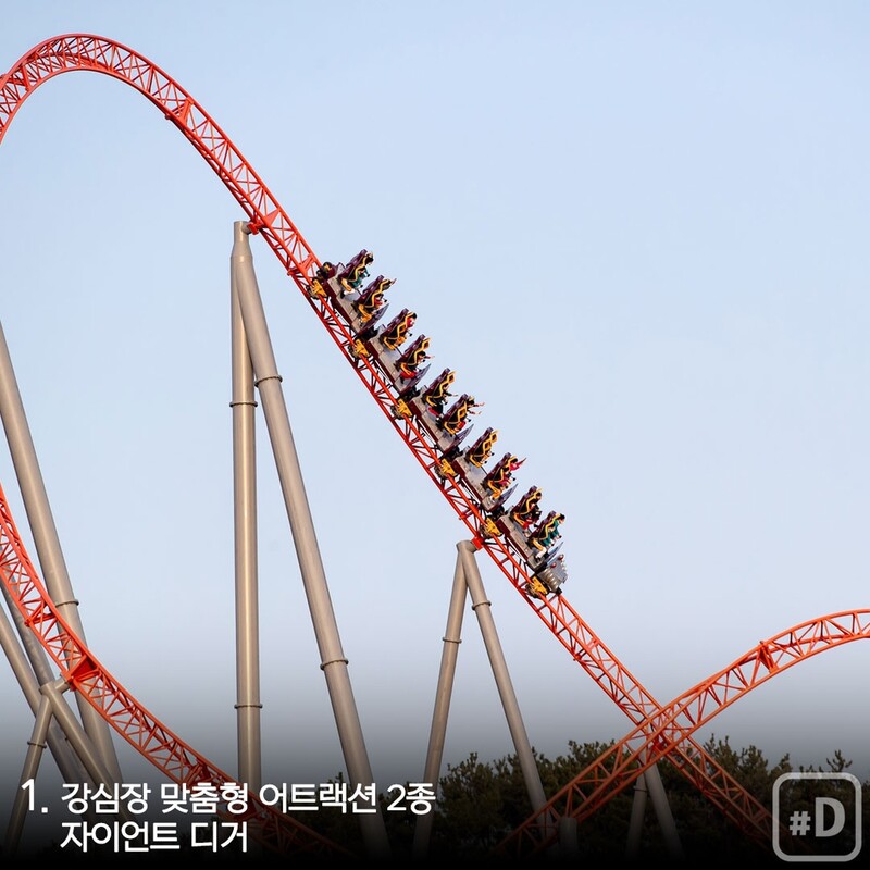 To begin with, two new awaited amusement park rides are being introduced for the first time in South Korea. The Giant Digger, a rollercoaster with a maximum speed of 105km/h with three 360-degree rotation parts, provides an exhilarating sense of speed. Another ride, 'Giant Splash' is a water coaster that descends at a speed of 100km/h from a height of 44.6m towards a canal containing about 2,000 tons of water.