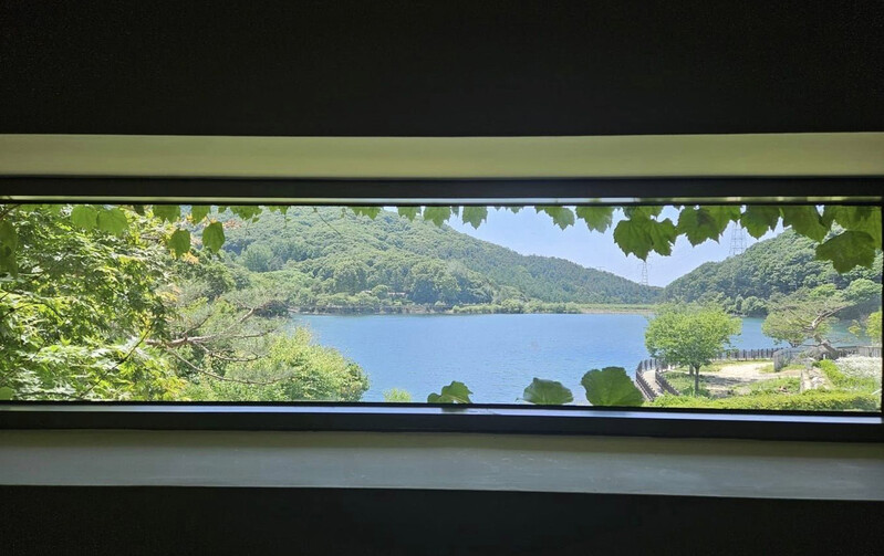 In front of this deep blue lake, there is Ahn Sang Chul Museum