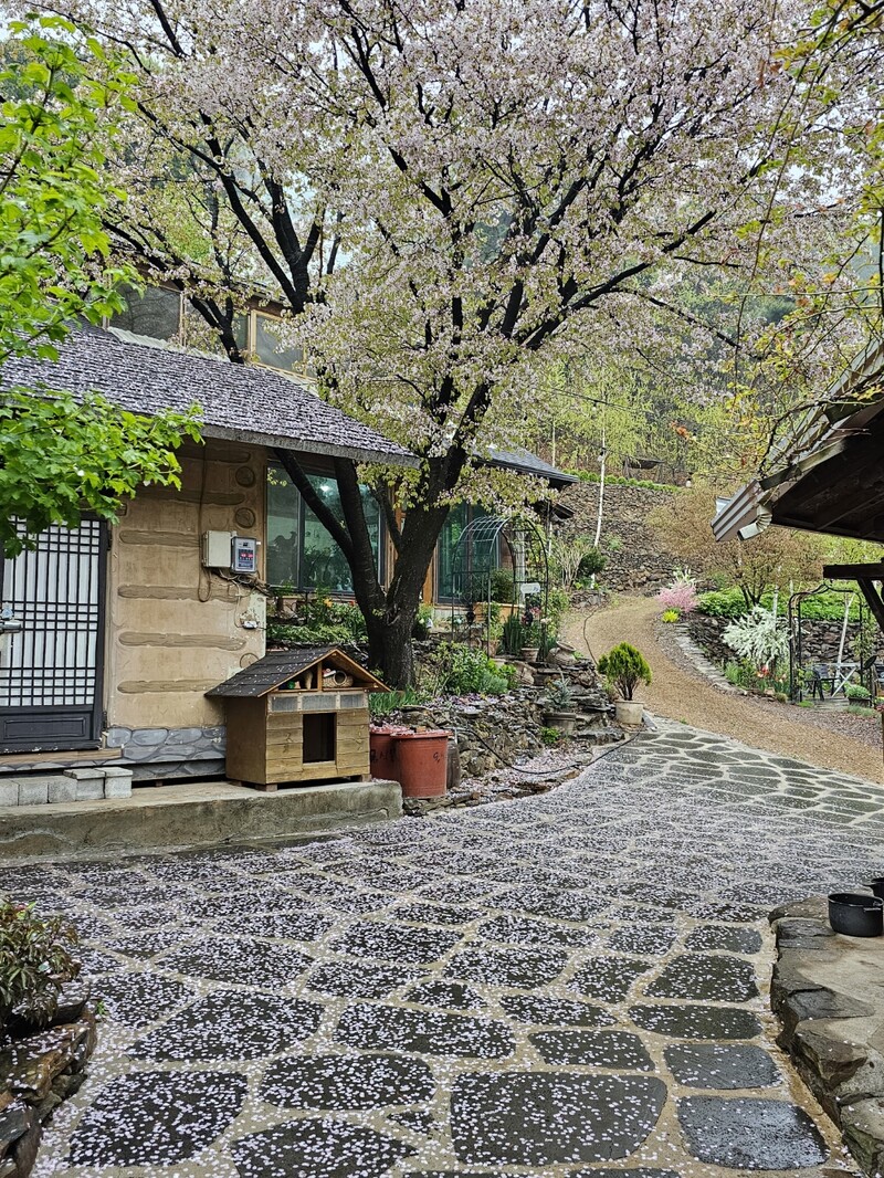 | ▲흰눈처럼 내린 마지막 왕벚꽃잎. This photo shows pedals of Wangbeotkkot. |
