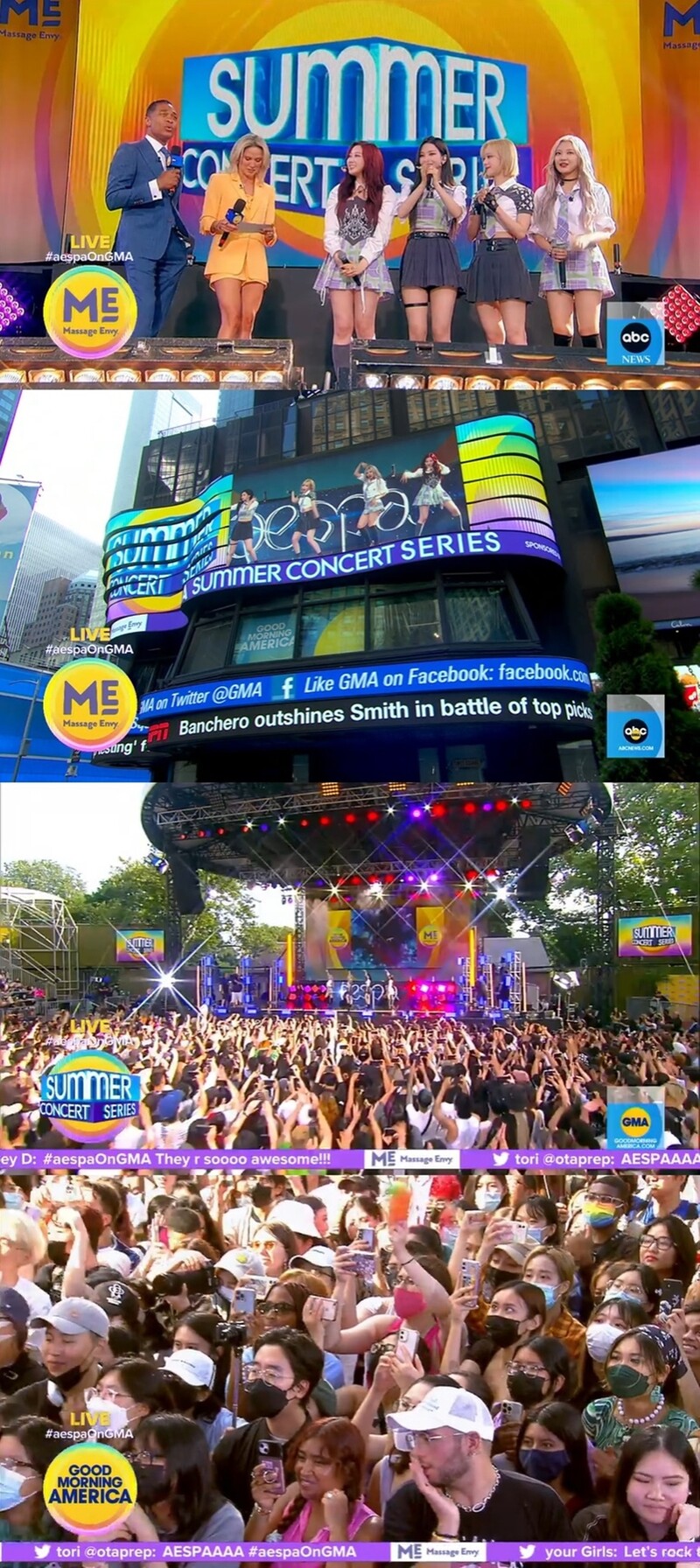 These photos, provided by SM Entertainment, show aespa performing on opening stage of “Good Morning America (GMA) 2022 Summer Concert Series” held at the Rumsey Playfield in Manhattan Central Park, New York, United States on the 8th (EST).