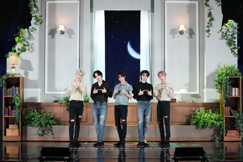 These photos, provided by Big Hit Music, show the members of TOMORROW X TOGETHER at the media showcase of the group's upcoming 5th mini album "TEMPTATION."