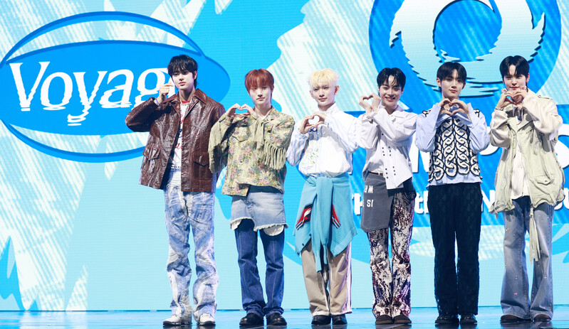 South Korea boy group Tempest poses for a photo during a showcase for its fifth mini album, "Tempest Voyage," at an arts hall in Seoul on March 11, 2024. (Yonhap)