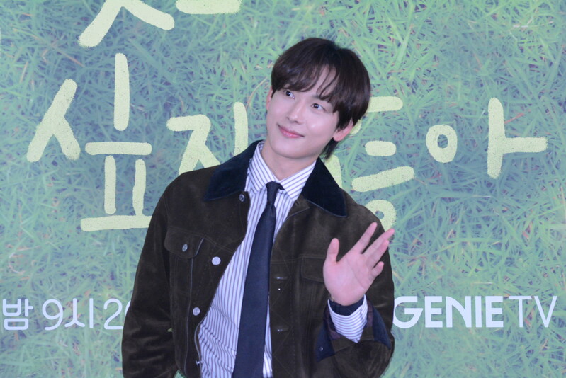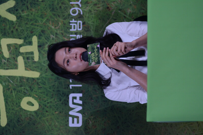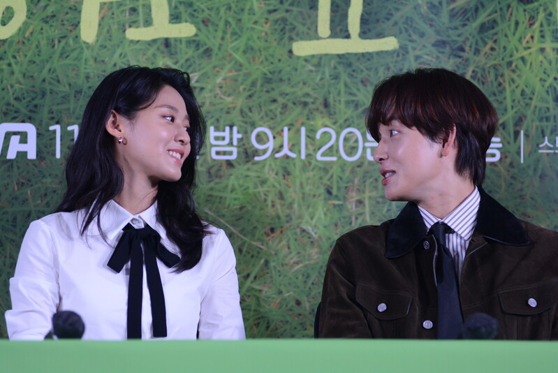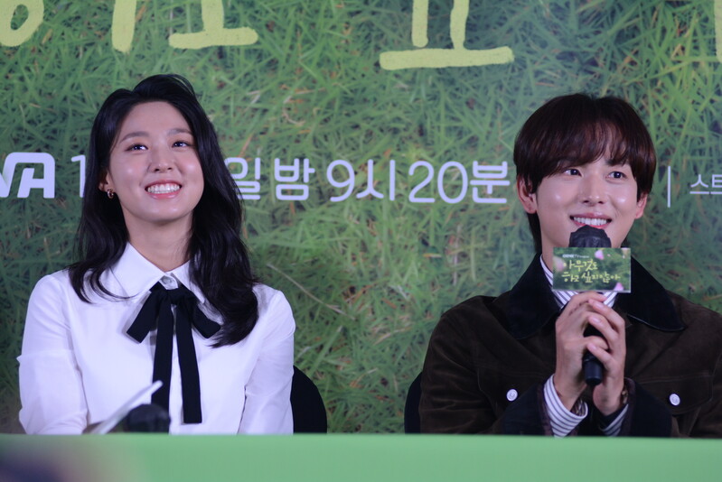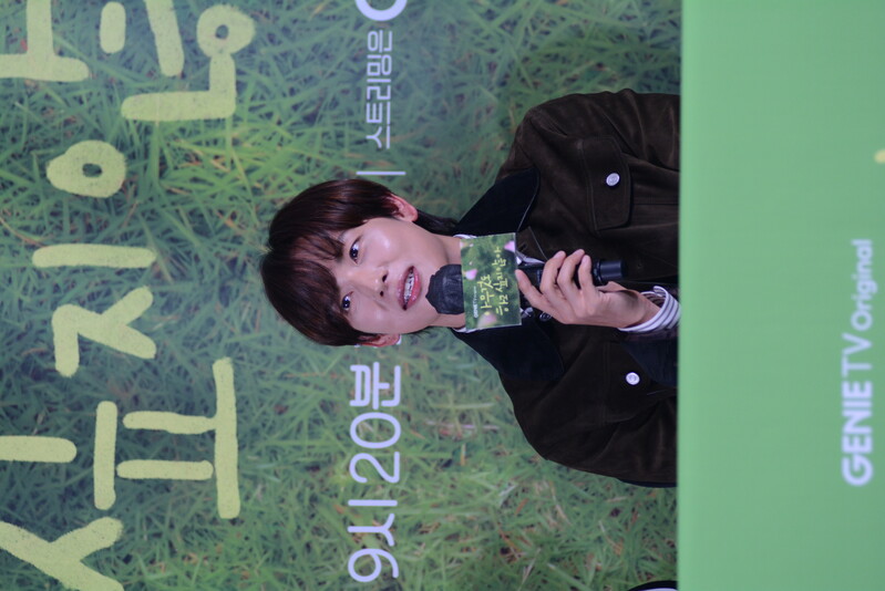 These photos, taken during the press conference of the upcoming drama "Summer Stike" show actress Kim Seol-hyun and actor Im Si-wan posing for their individual and group photos and answering to questions throughout the press conference.