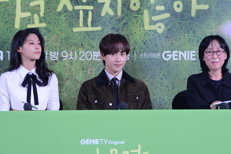 Photos of actress Kim Seol-hyun and actor Im Si-wan at press conference of 'Summer Strike'