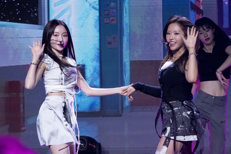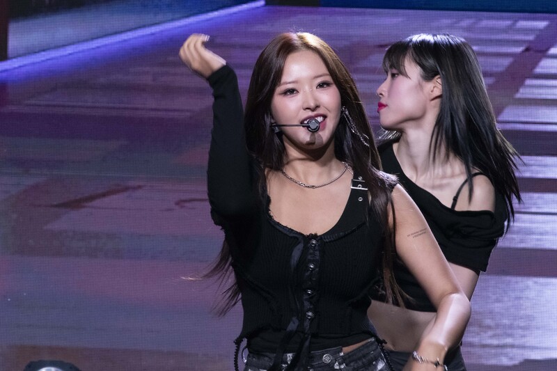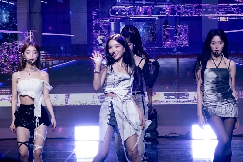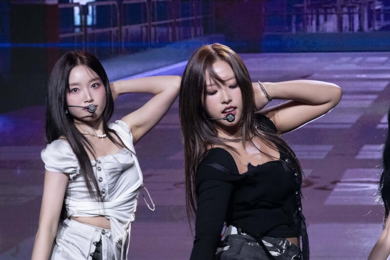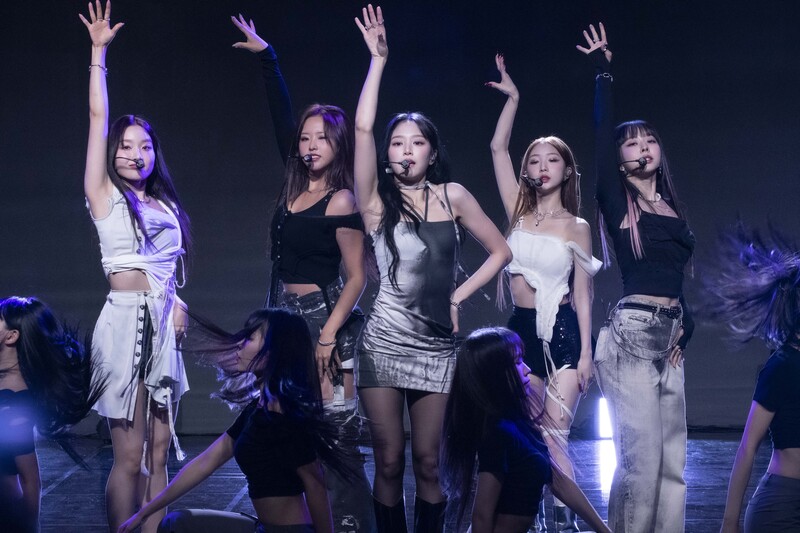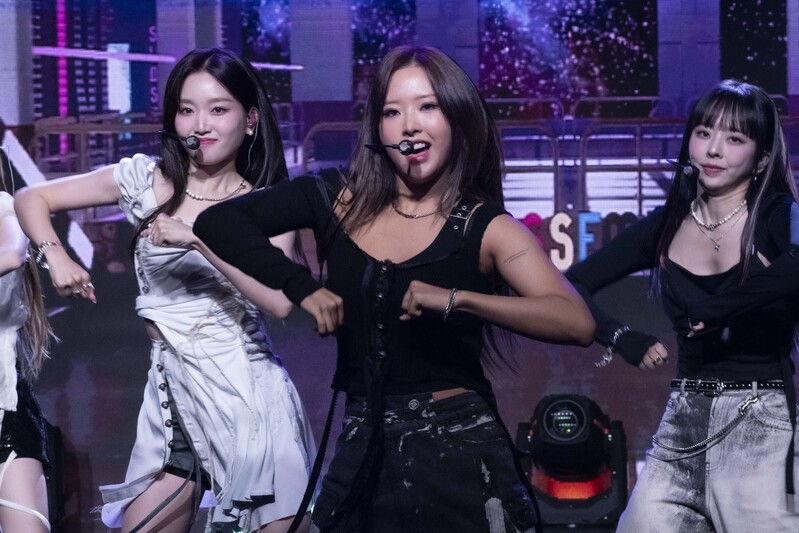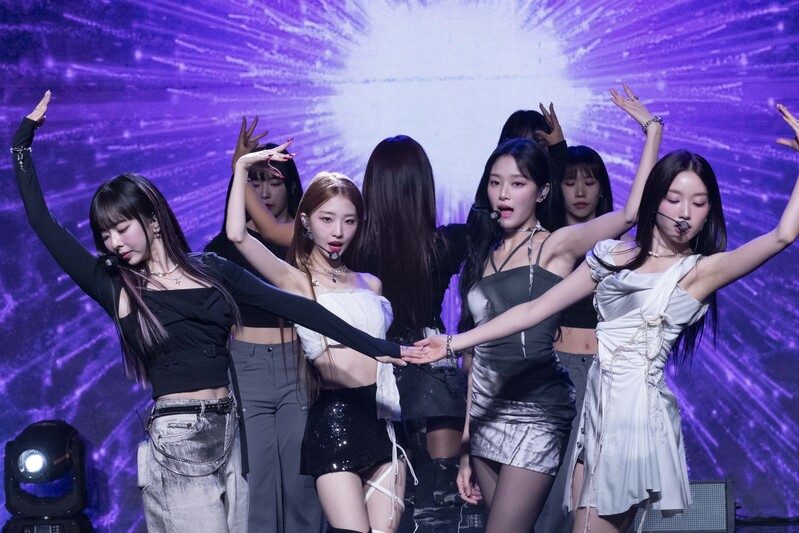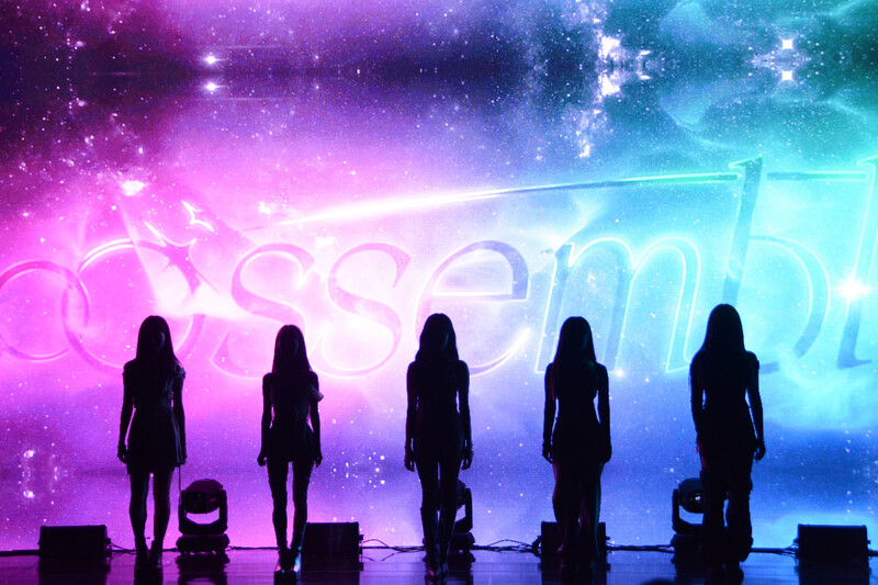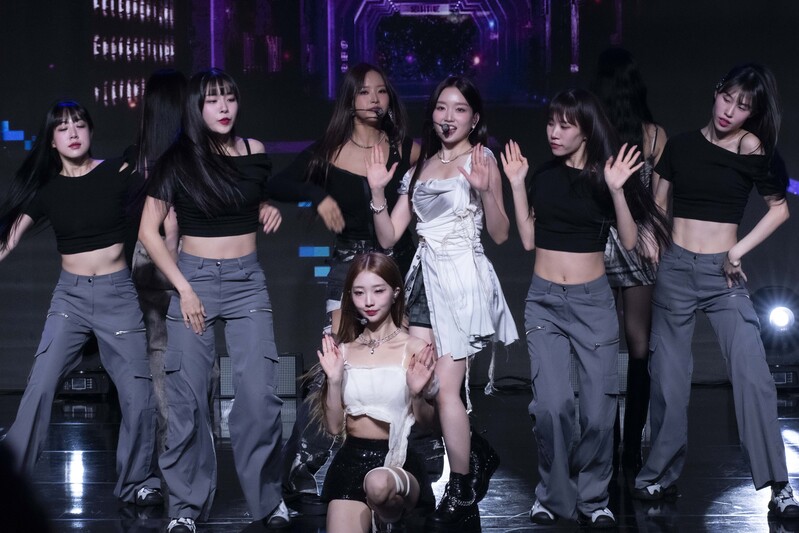 These photos taken during the media showcase of K-pop girl group Loossemble's first mini album 'Loossemble' show members performing their lead track "Sensitive."