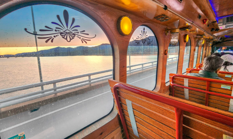 After getting off at Ungilsan Station on the Gyeongui Line, walk about 50 meters, and you'll come across a bus stop. After waiting for a few minutes, a trolleybus, similar to those seen in Seoul, pulls up. The bus is adorned with a deep red exterior, and inside, wooden chairs are installed. Trolleybus typically refers to electrically operated tramcars in Europe, but domestically, the term is used to refer to tourist buses that apply the design to regular buses.