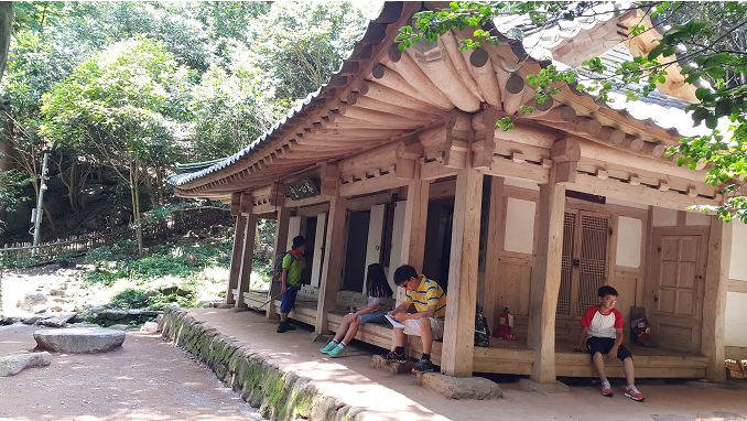 | ▲세 칸짜리 절방에서 다산과 아들은 1년을 꼬박 주역과 예기에 파묻혔다. This photo shows, three roomed structure where Dasan Jeong Yak-yong stayed with his son for a year. |