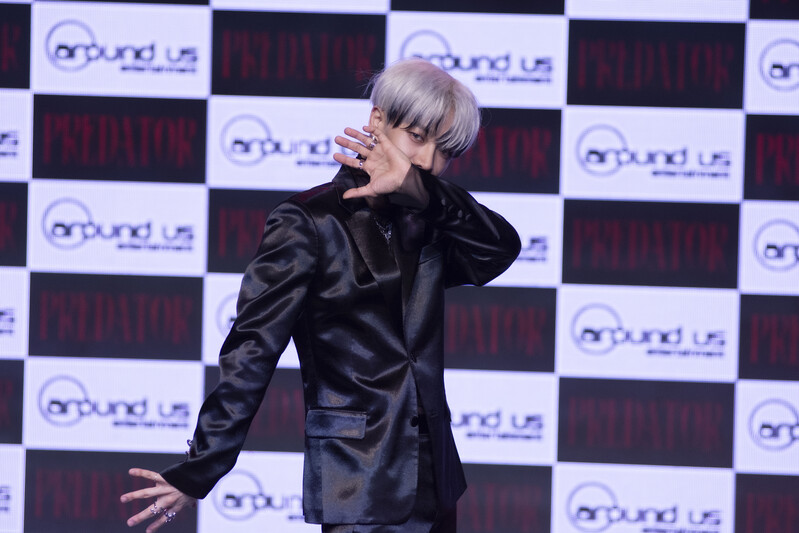 These photos, taken during the media showcase of K-pop boy group Highlight's Lee Gi-kwang's first full length solo album "Predator" show artist perform his title track "Predator," pose for his individual photos and answer questions throughout the session.