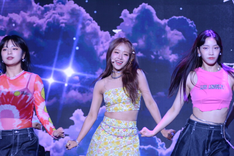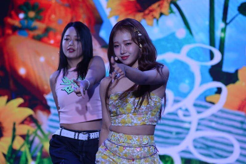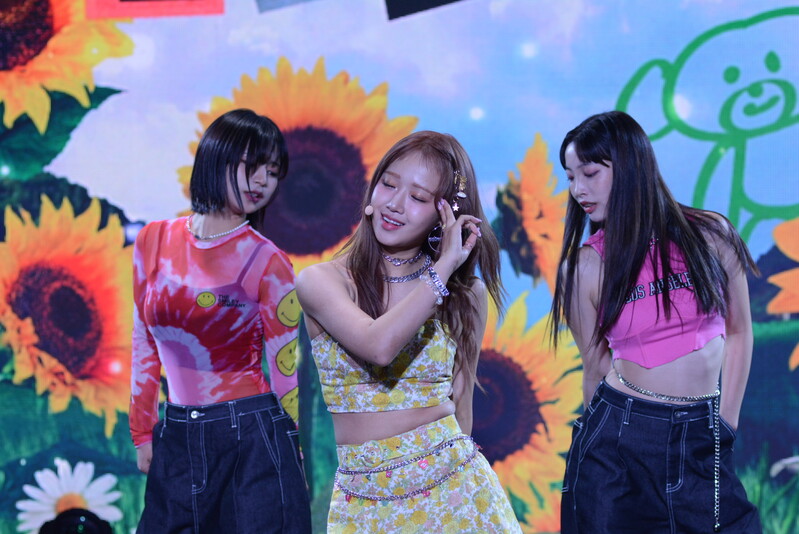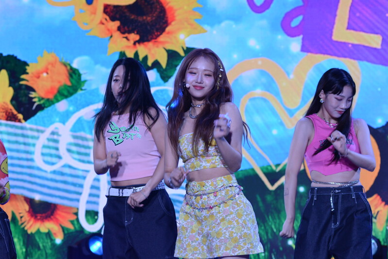These photos, taken during the media showcase of Choi Yoo-jung's first solo single album "Sunflower" shows Choi Yoo-jung during the question and answer session and her performance of the title track "Sunflower: P.E.L" and "OWL," which is one of the tracks included within her singe album.