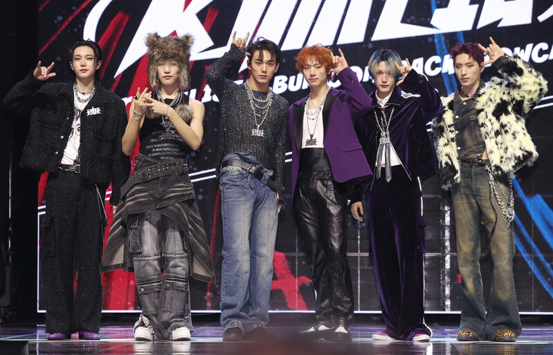 South Korean boy group P1Harmony poses for a photo during a showcase to promote the group's first album "Killin' It" in Seoul on Feb. 5, 2024. (Yonhap)