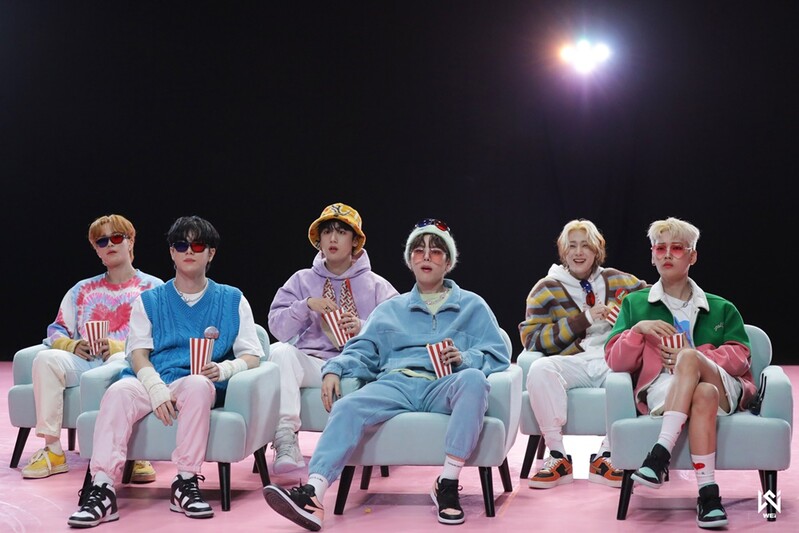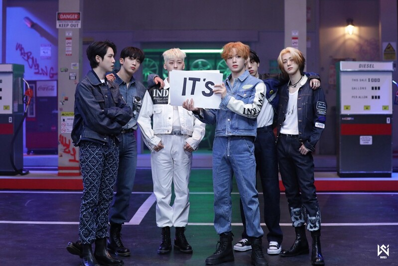 These photos, provided by Oui Entertainment, show K-pop group WEi's "Too Bad" M/V behind-the-scenes photos.