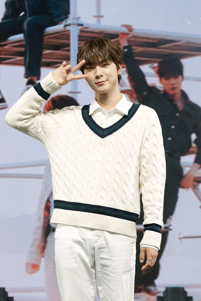 These photos, provided by Spire Entertainment, show K-pop boy group OMEGA X, which has held the media showcase for the first full album "樂서(Story Written in Music)," which will be dropped on June 15 at 6 p.m.