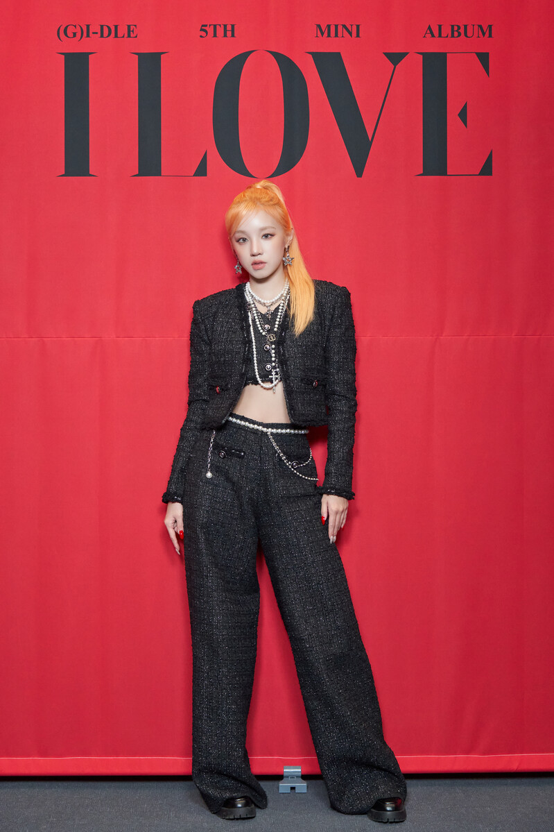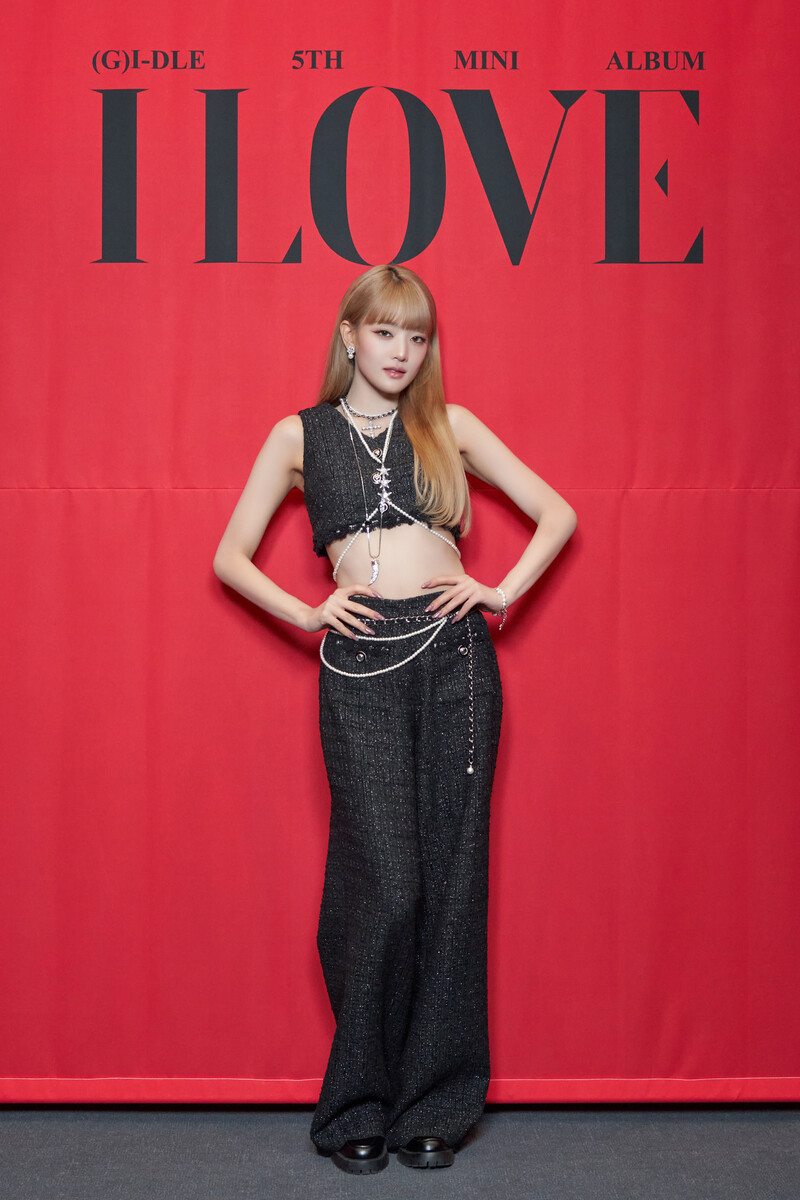 These photos, provided by CUBE Ent., shows GIDLE members at photo wall of X-LOVE-SHOW, which took place on Oct. 17.