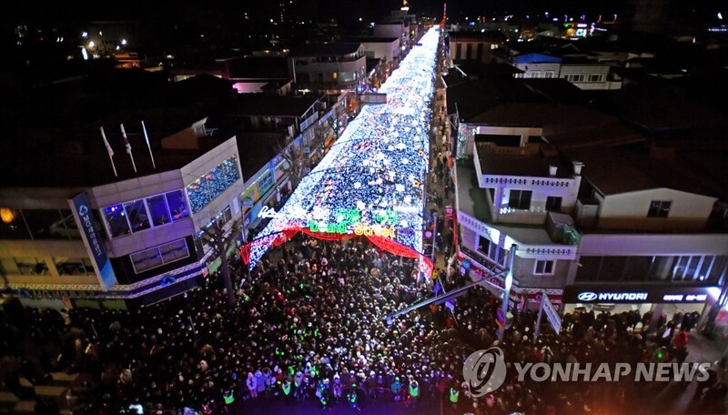 ▲This photo, provided by Hwacheon County Government show photo of the lantern lit street. (PHOTO NOT FOR SALE) (Yonhap)