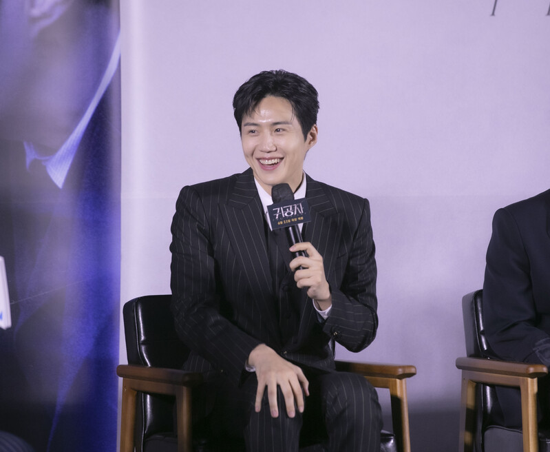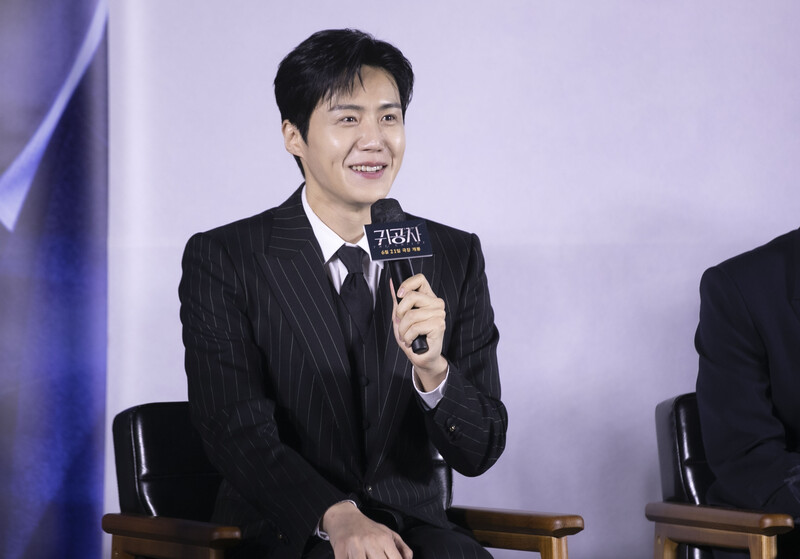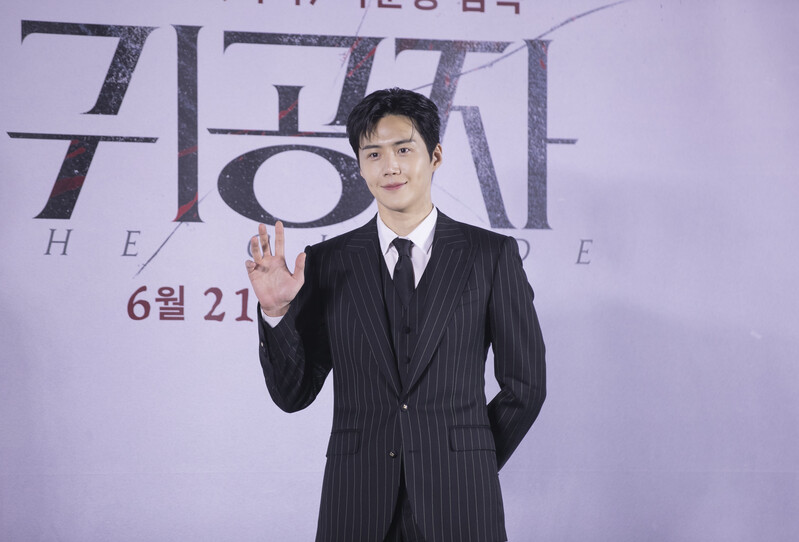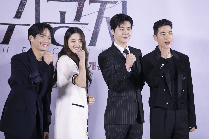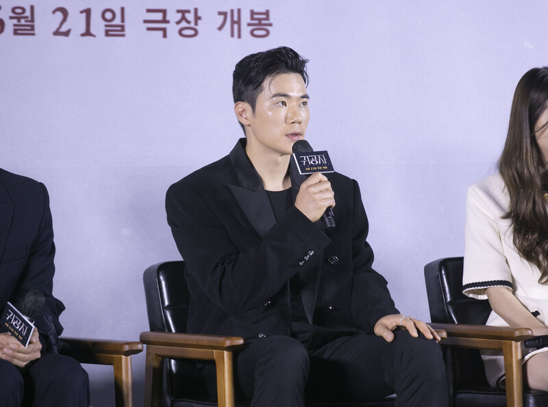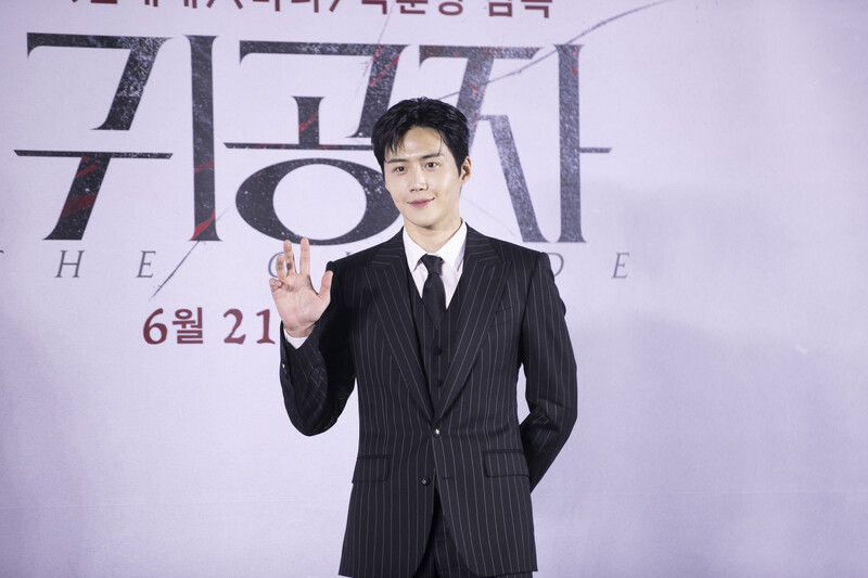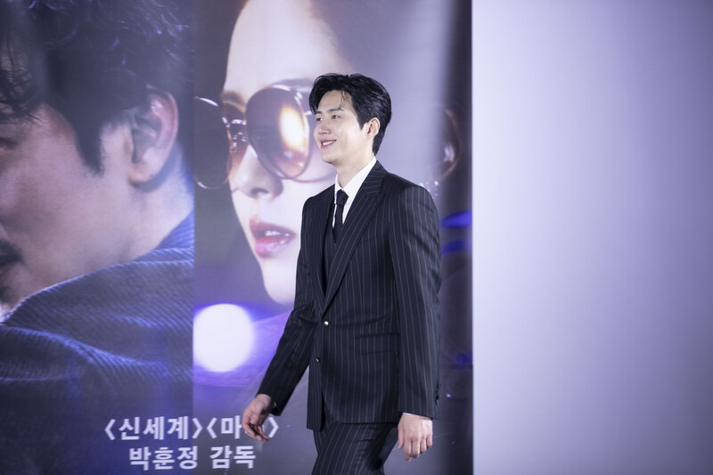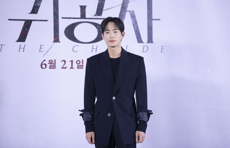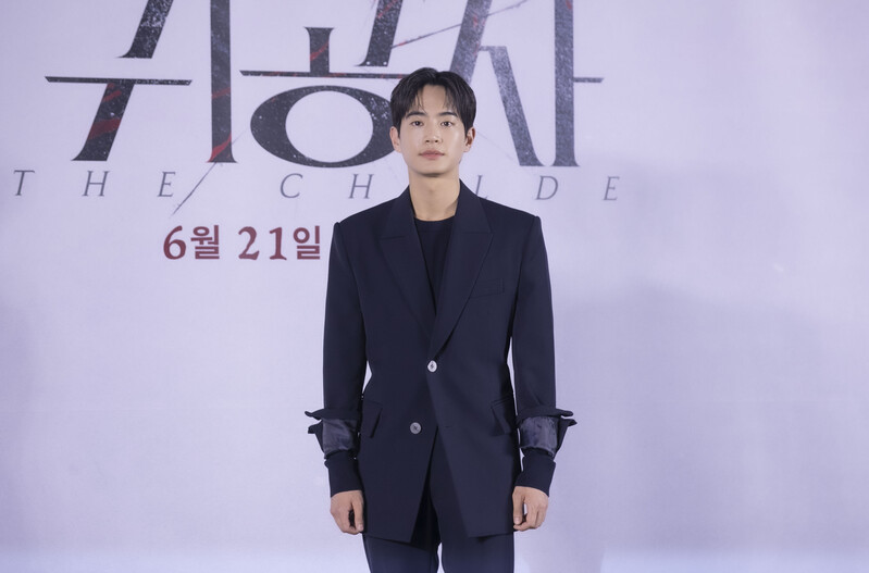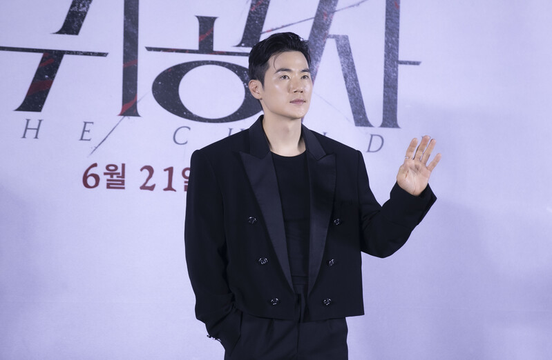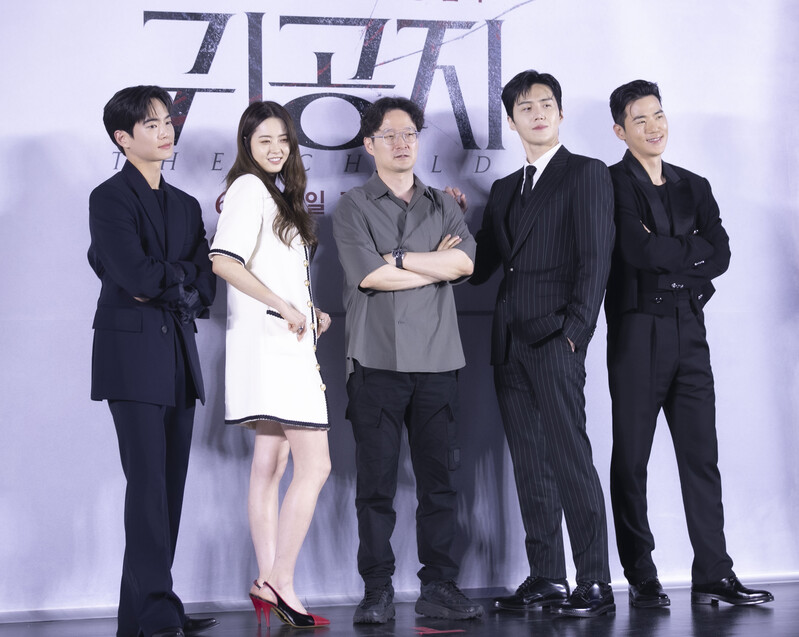 These photos, taken during the press conference of the upcoming movie "The Childe" show actor Kim Seon-ho and various other cast members during the event.