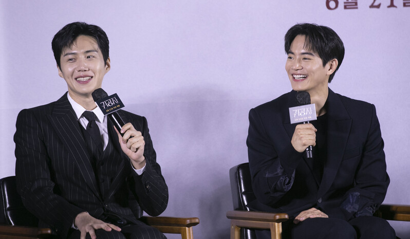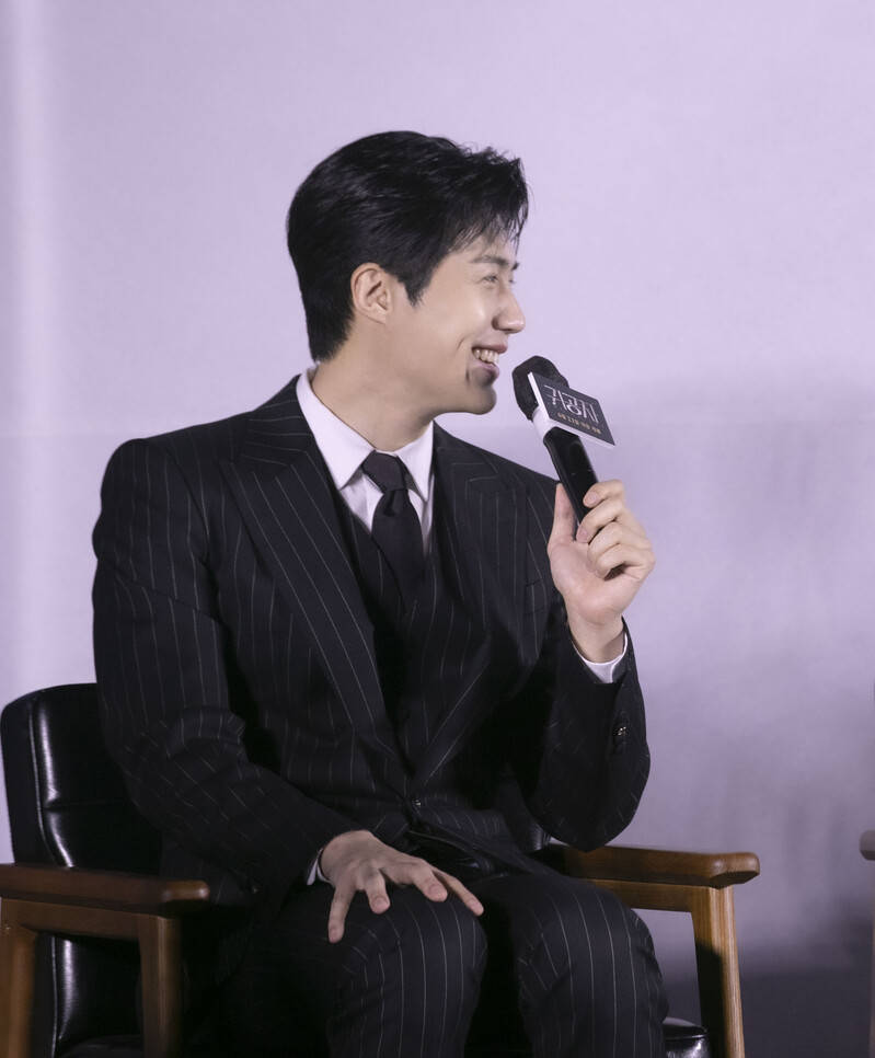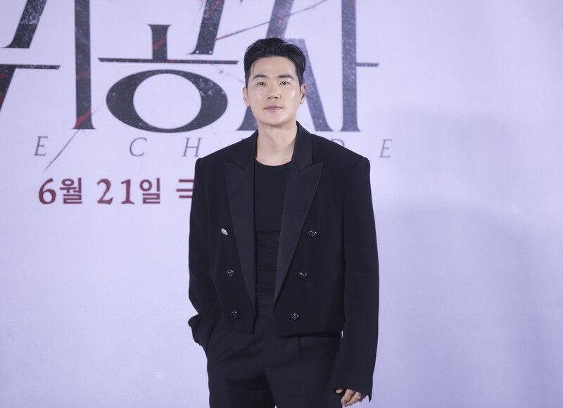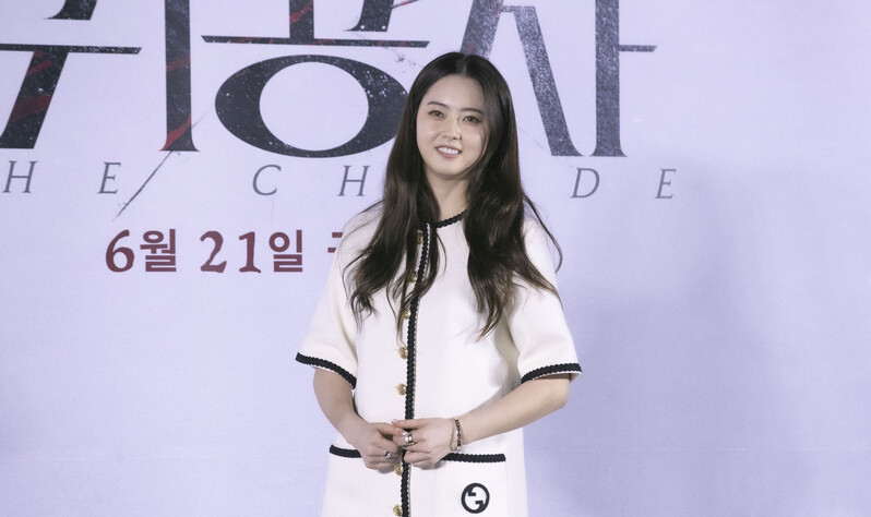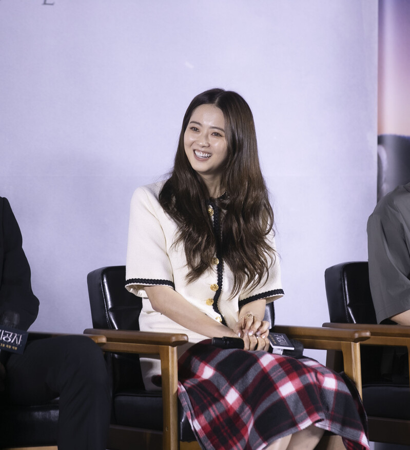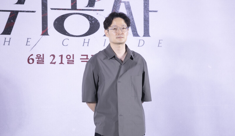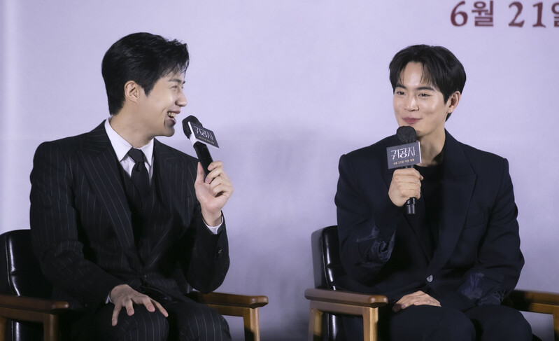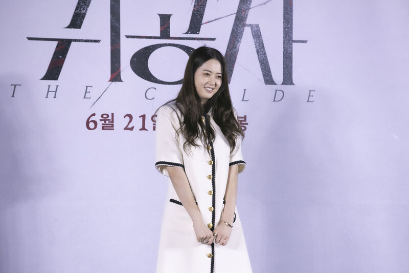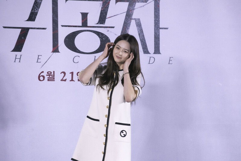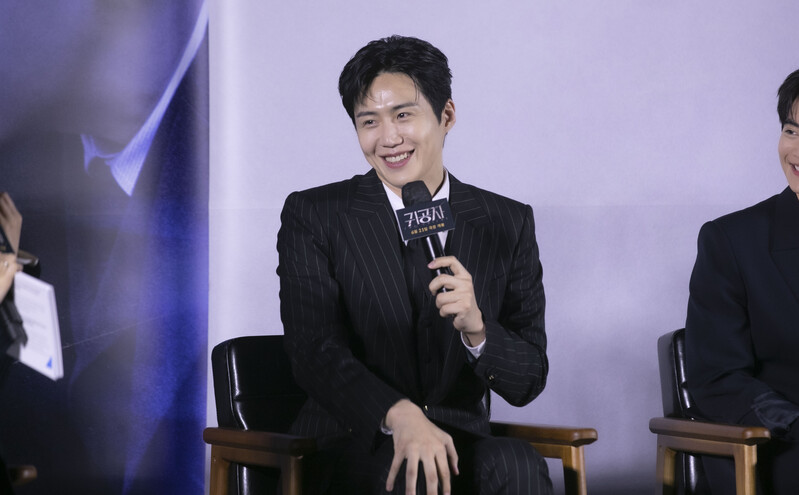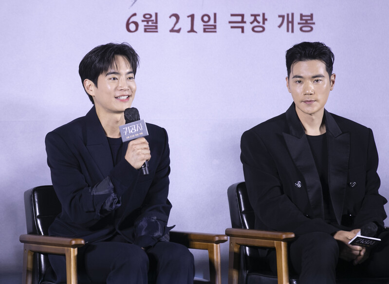 These photos, taken during the press conference of the upcoming movie "The Childe" show actor Kim Seon-ho and various other cast members during the event.