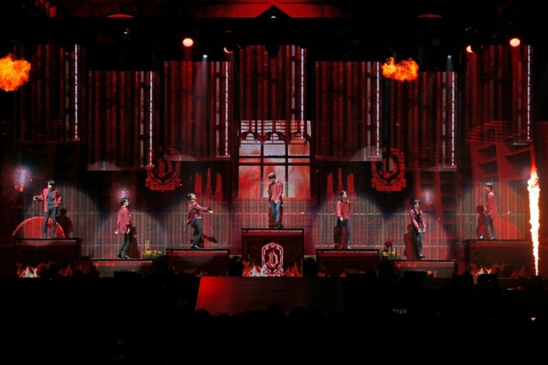The K-pop group kicked off their performance in shining white outfits, showing a distinguishable charm of their own, and changed into red outfits as they went halfway through the gig, showing off their irresistible and fatal charming points.