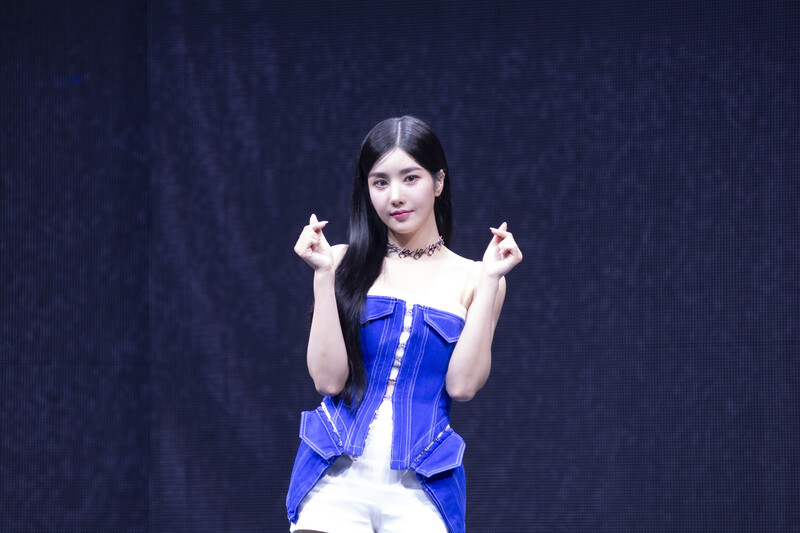 These photos taken during the media showcase of Kwon Eunbi's latest album "The Flash" show Kwon Eunbi posing for photos throughout the session.