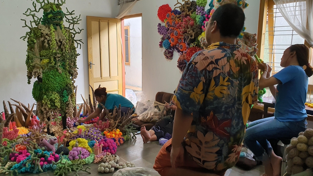 물야나는 모구스에 이어 커다란 문어, 산호초 등 수중 환경을 뜨개질로 표현하는 작업에 몰두했다.