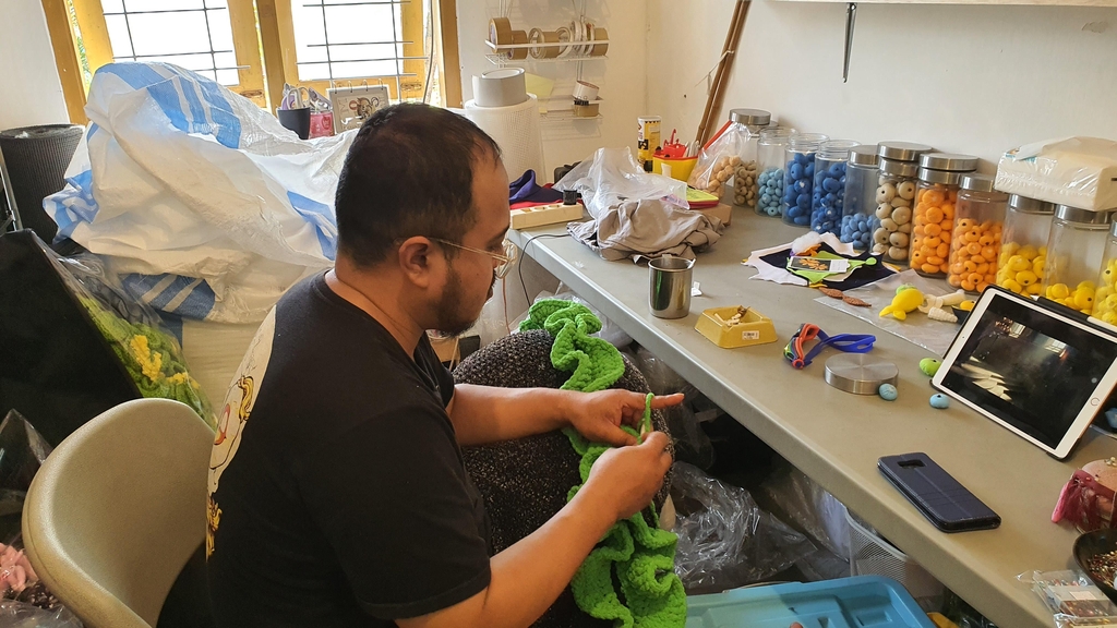 (자카르타=연합뉴스) 성혜미 특파원 = 뜨개질로 귀여운 괴물이나 수중 환경을 표현해 인도네시아에서 인기몰이 중인 예술가 물야나(36)는 한국 광주에 자신의 작품을 설치하고 온 데 대해 "정말 행복하다"고 말했다.