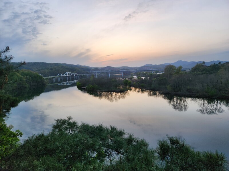 The road to Chungju is mostly surrounded by low-rise mountains, with hills embroidered with blooming peach, pear and apple flowers, naturally weighing down on drivers' wheels.