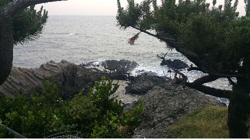 | ▲감포 바다에는 수억 년 전 화산활동으로 생긴 주상절리가 있다. 경주 양남 주상절리는 부채꼴 형태로 유명하고 대부분의 주상절리가 세로지만 양남 주상절리는 바위가 가로로 쪼개졌다. 문무대왕릉으로부터 10분 정도 거리에 있다. Overview of Gampo sea. |
