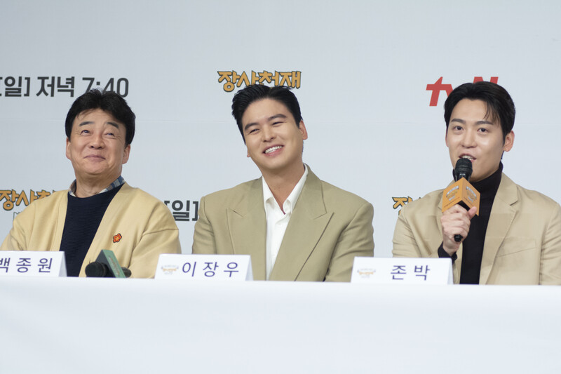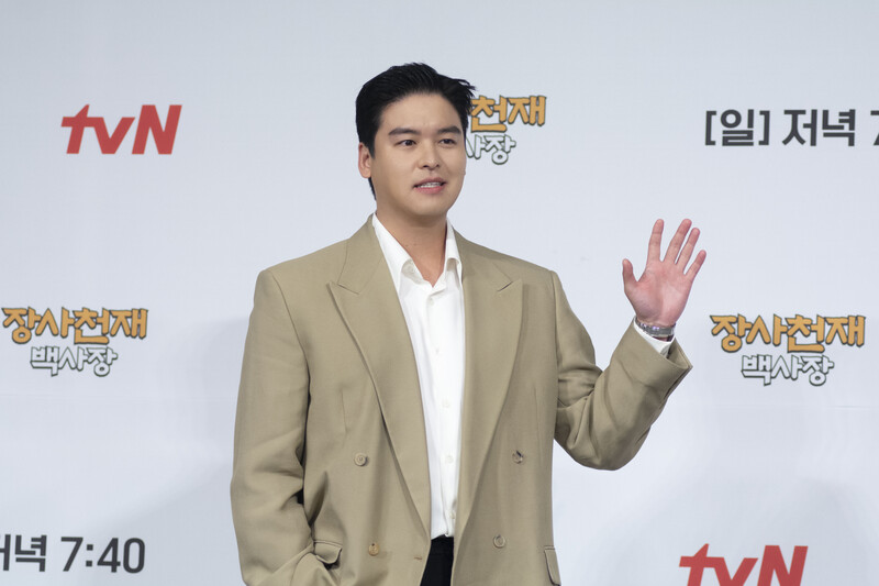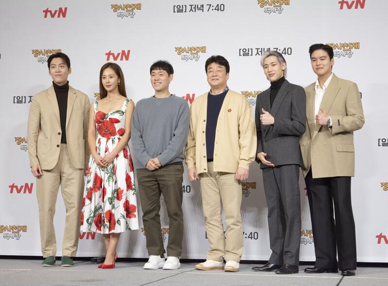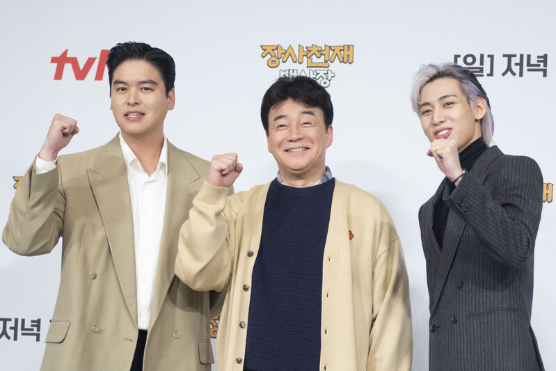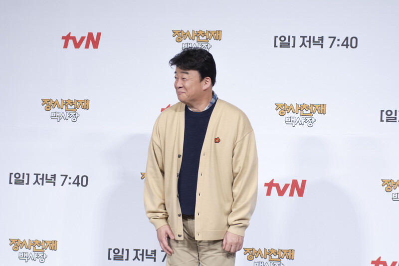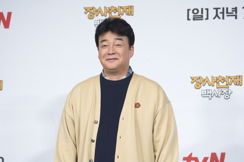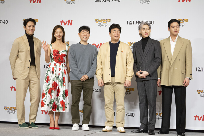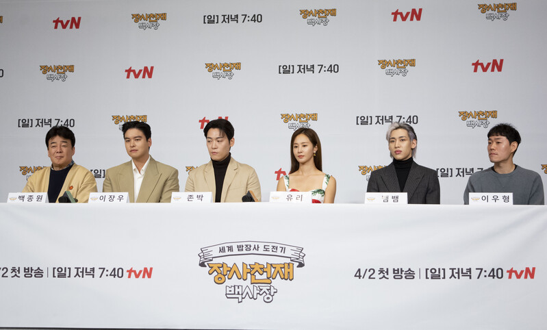 These photos taken during the press conference of the upcoming variety show from TVN show "The Restaurateur Paik" show photos of individual members who appear at the show.