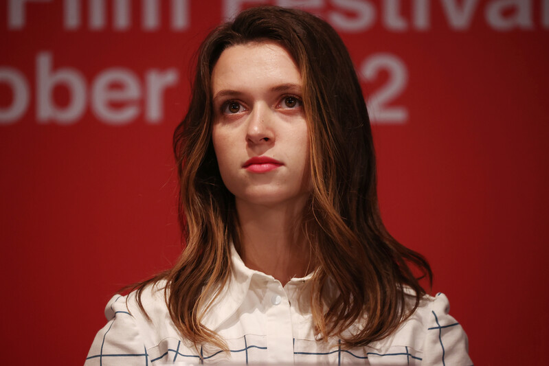 Actress Juliette Jouan of the movie "Scarlet" listens to a question from a reporter during a press conference held at the 27th Busan International Film Festival in Busan, 325 kilometers southeast of Seoul, on Oct. 8, 2022. (Yonhap)
