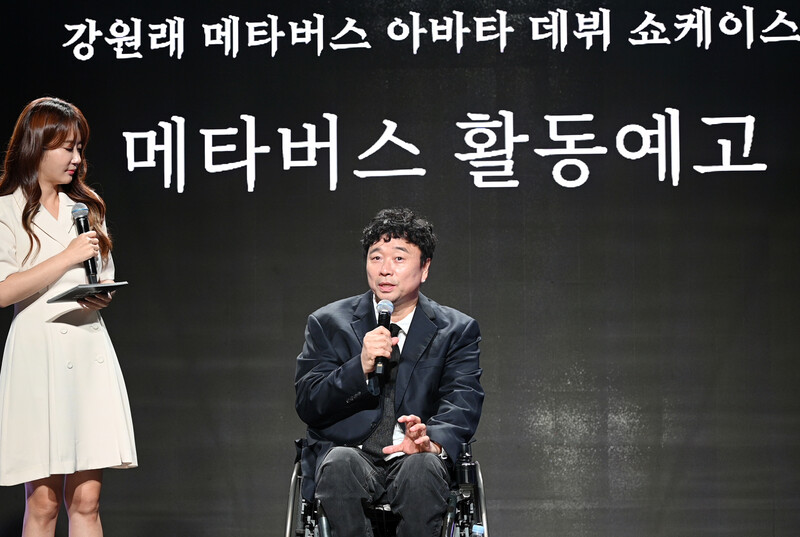 These photos, provided by Major7 Entertainment, shows Kang Won-rae and his avatar during the debut showcase for  Kang Won-rae's metaverse avatar.