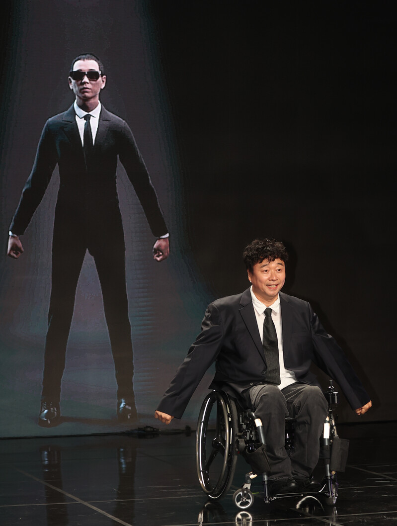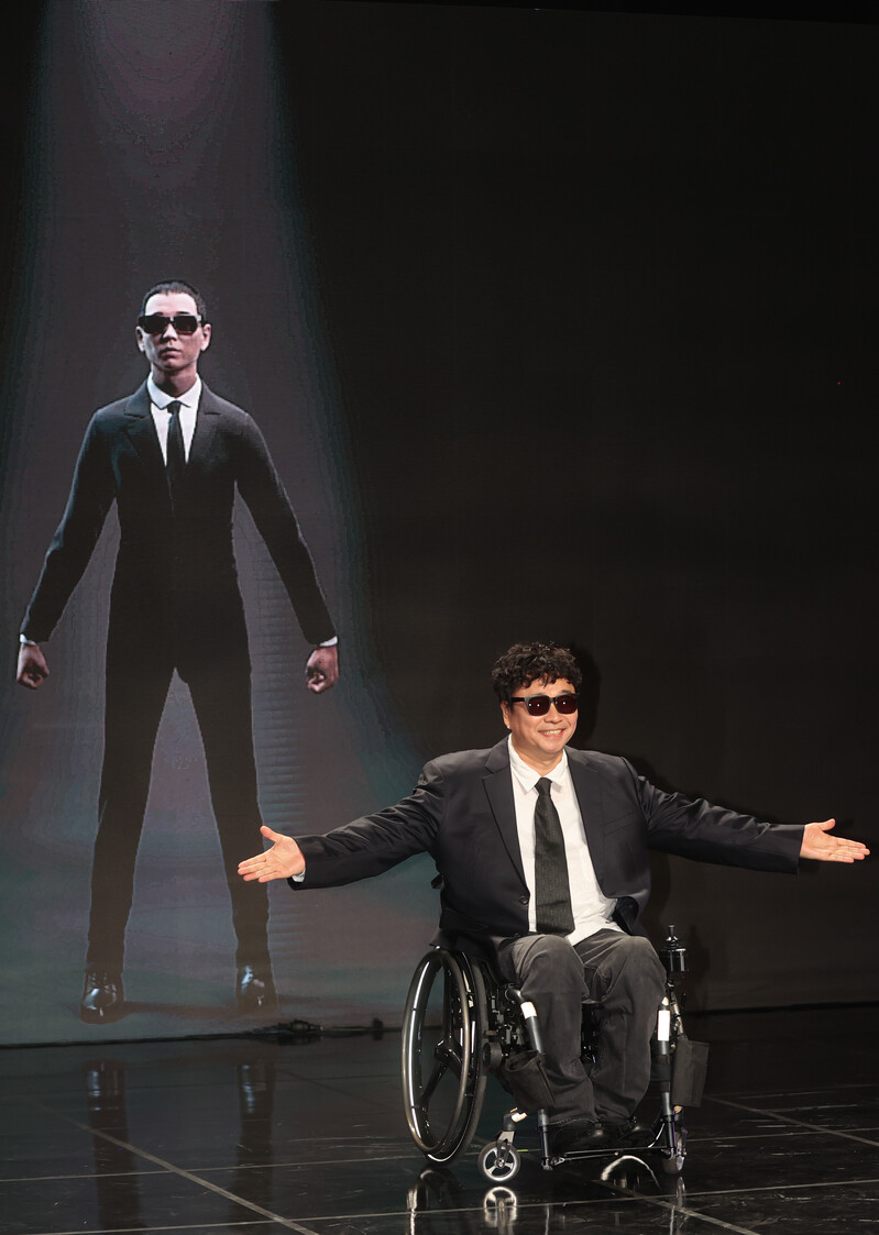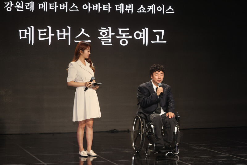 These photos, provided by Ryu Hyolim, shows  Kang Won-rae and his avatar during the media showcase of Kang Won-rae's metaverse avatar.