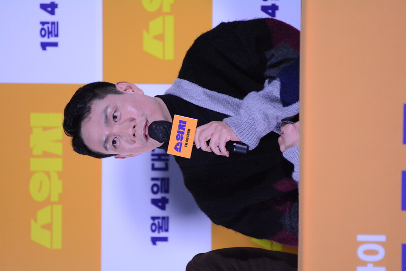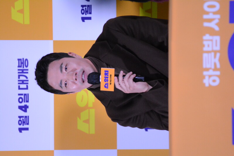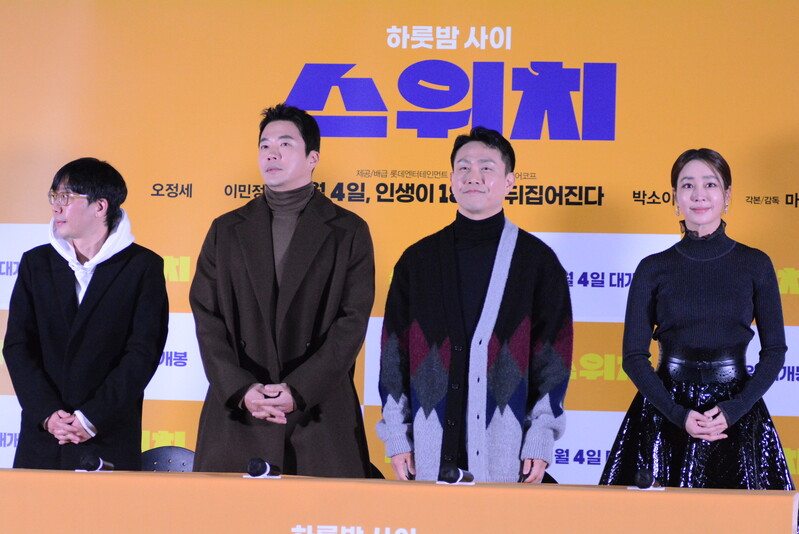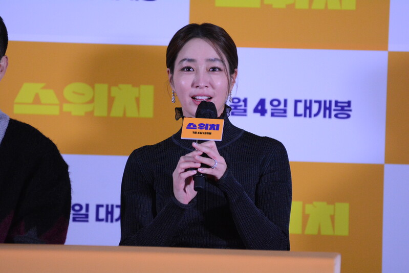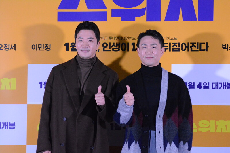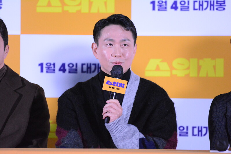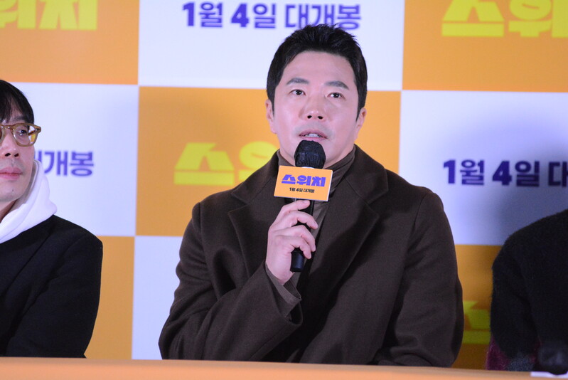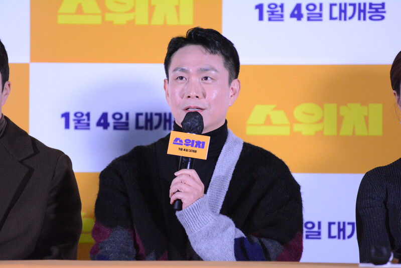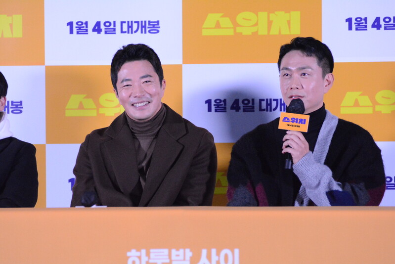 These photos taken during the press conference of the upcoming South Korean movie "Switch" show actor Kwon Sang-woo, Oh Jung-se and actress Lee Min-jung posing for individual and group photos and answering questions related to the movie.