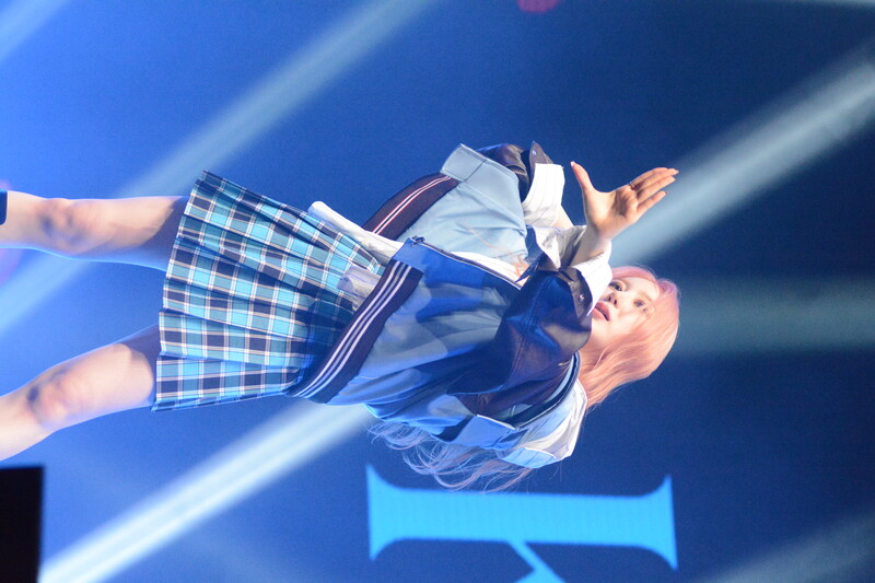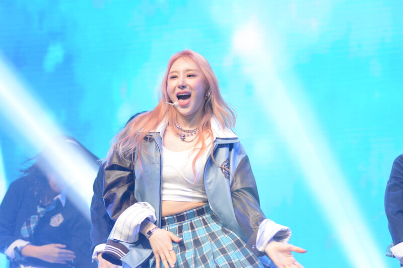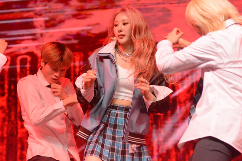 Photos of Lee Chae-yeon performing ‘knock’ and 'Don't Be A Jerk' during media showcase of ‘Over the Moon’