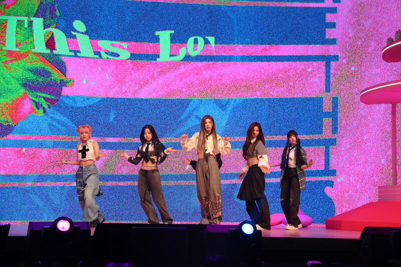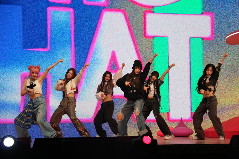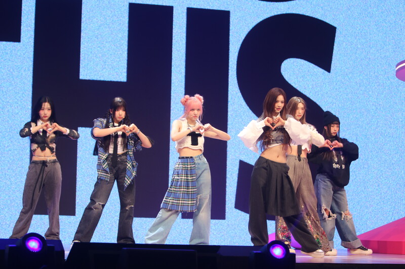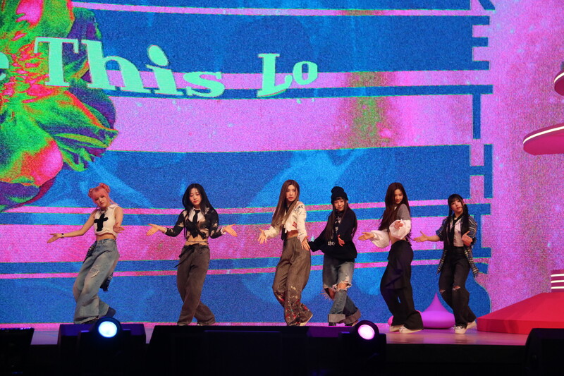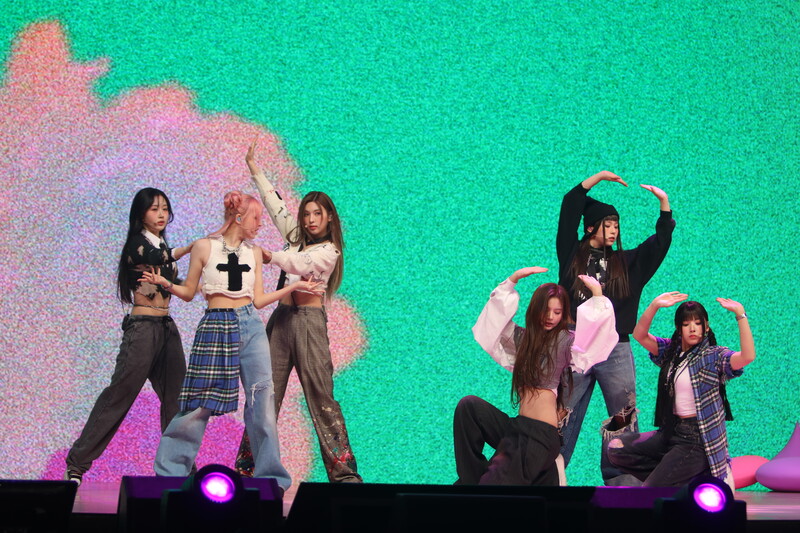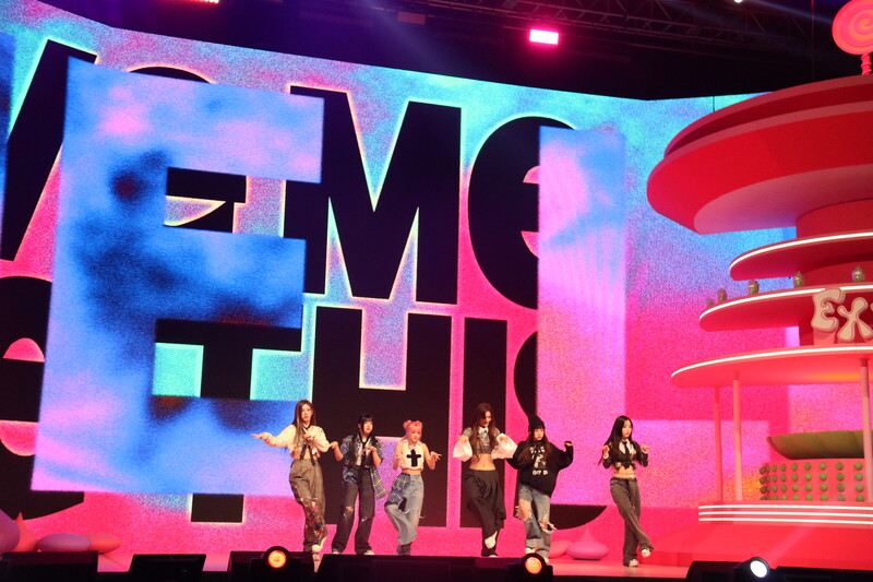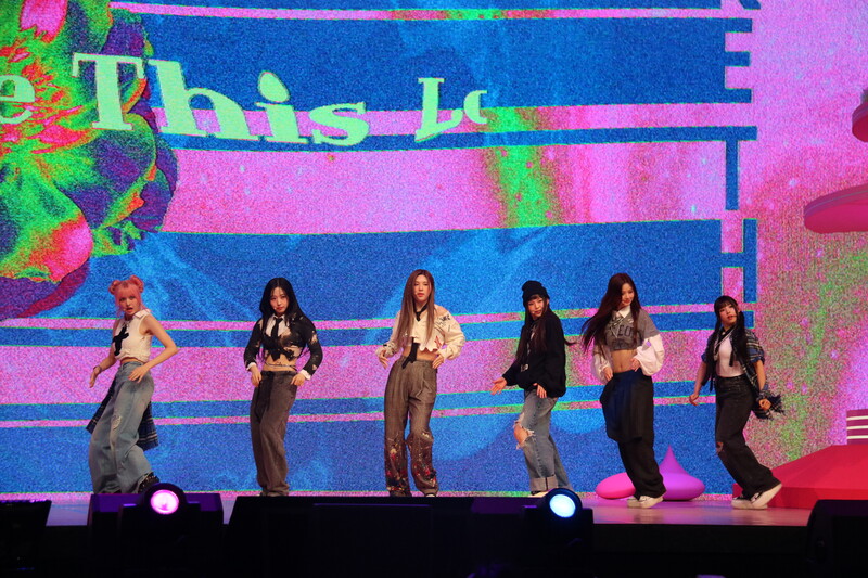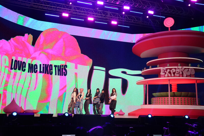 These photos taken during the media showcase of NMIXX’s first mini album “Expergo” show members performing group’s title track “Love Me Like This.”