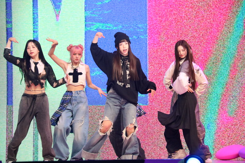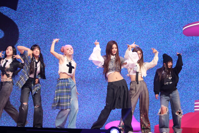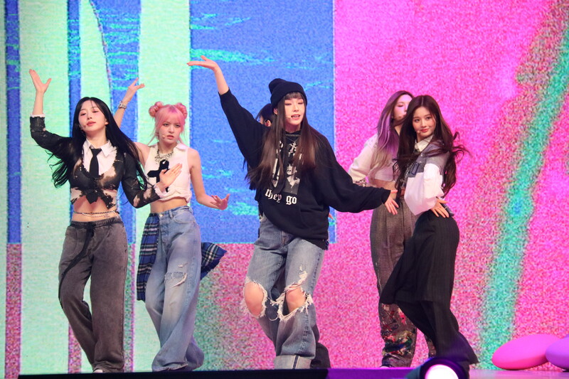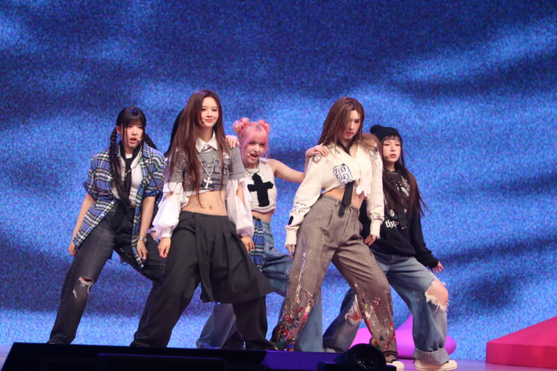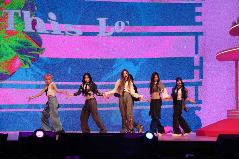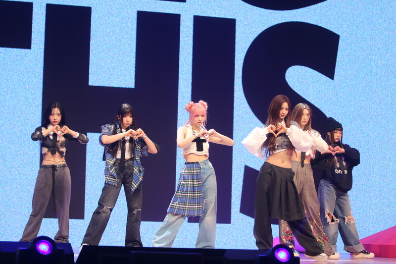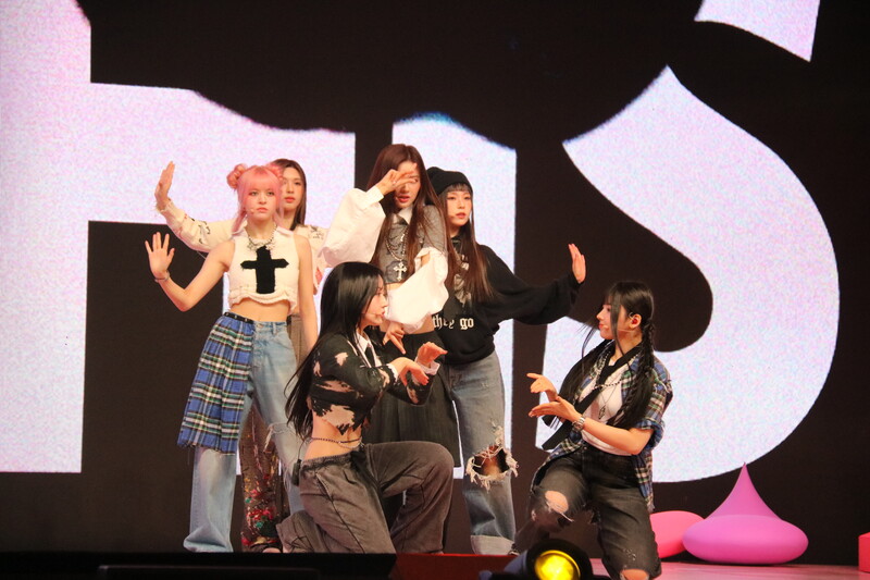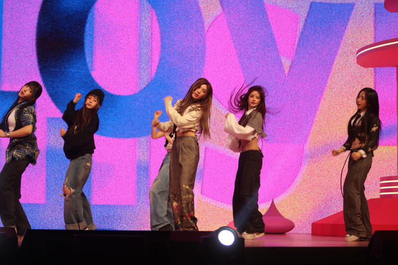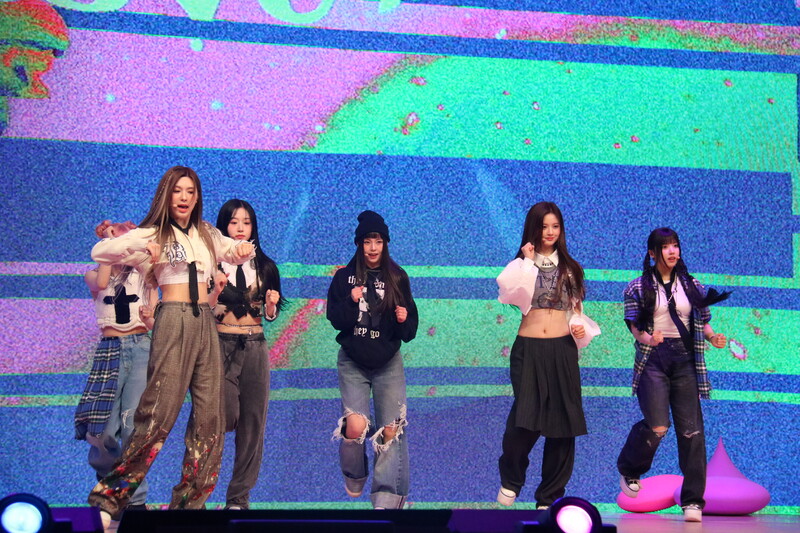 These photos taken during the media showcase of NMIXX’s first mini album “Expergo” show members performing group’s title track “Love Me Like This.”