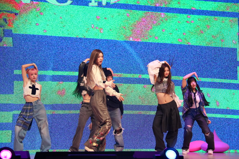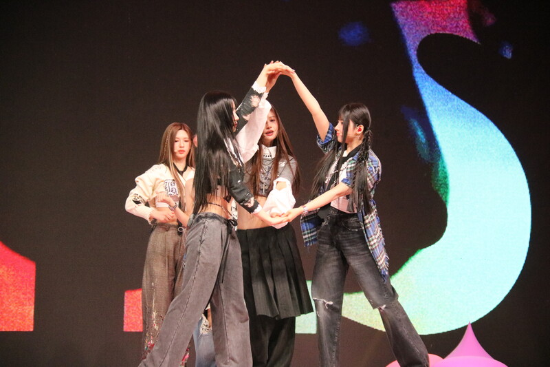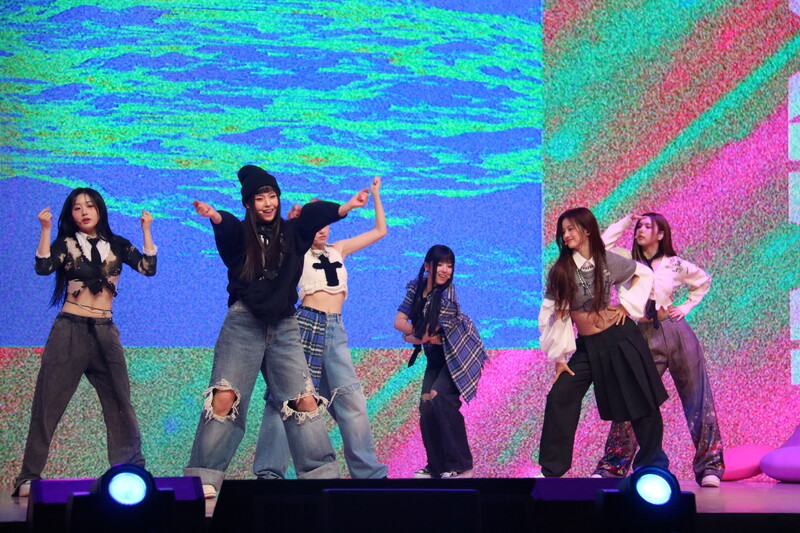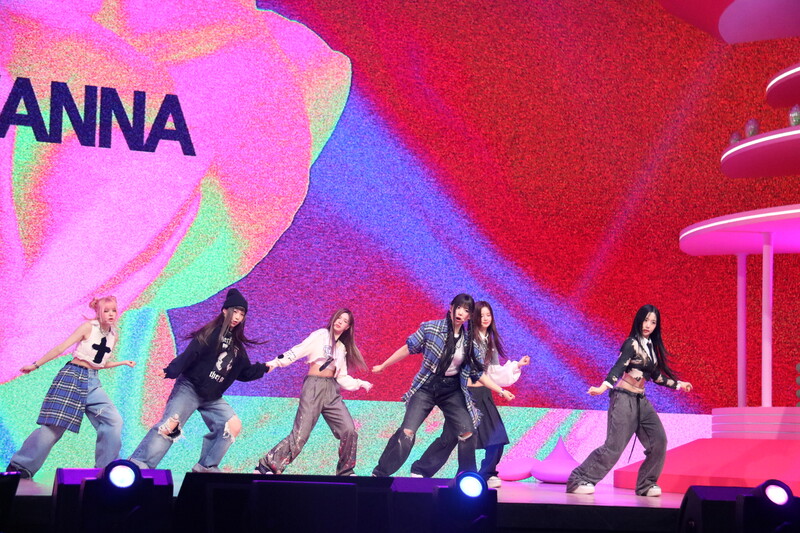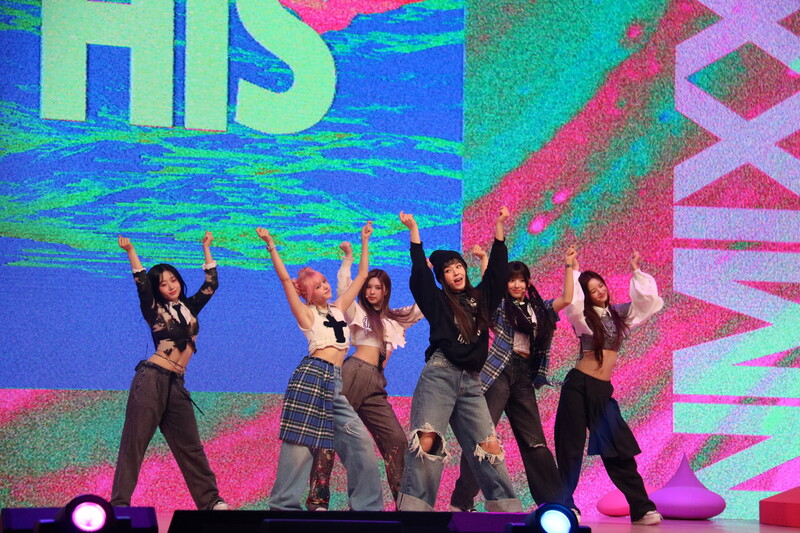 Performance photo of NMIXX during media showcase of first mini album ‘EXPERGO’