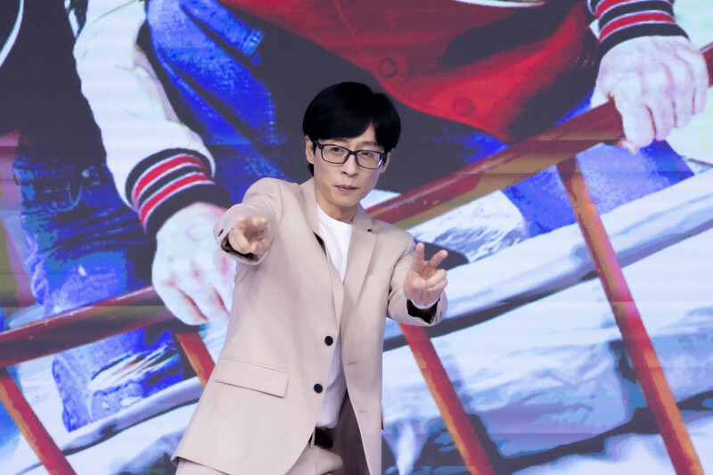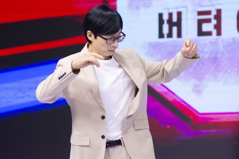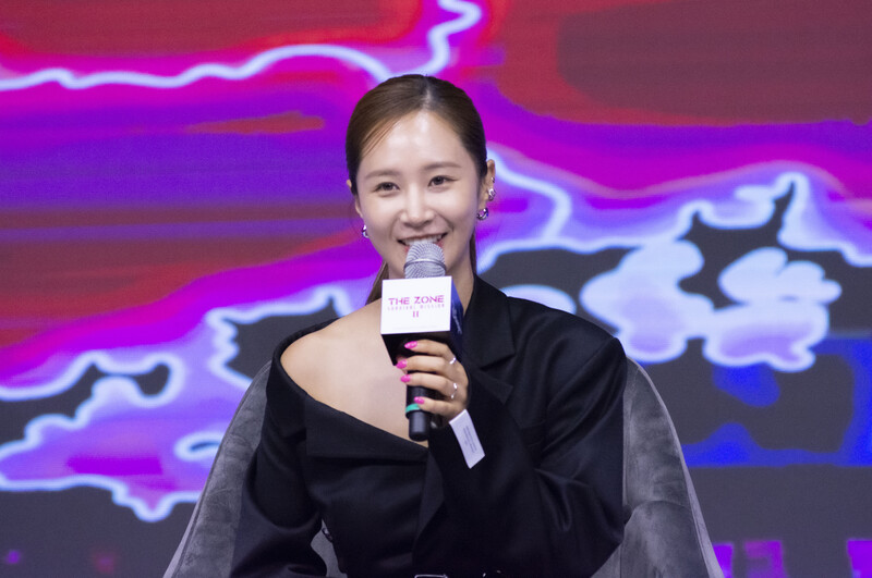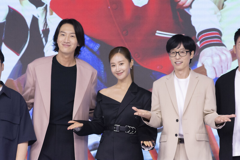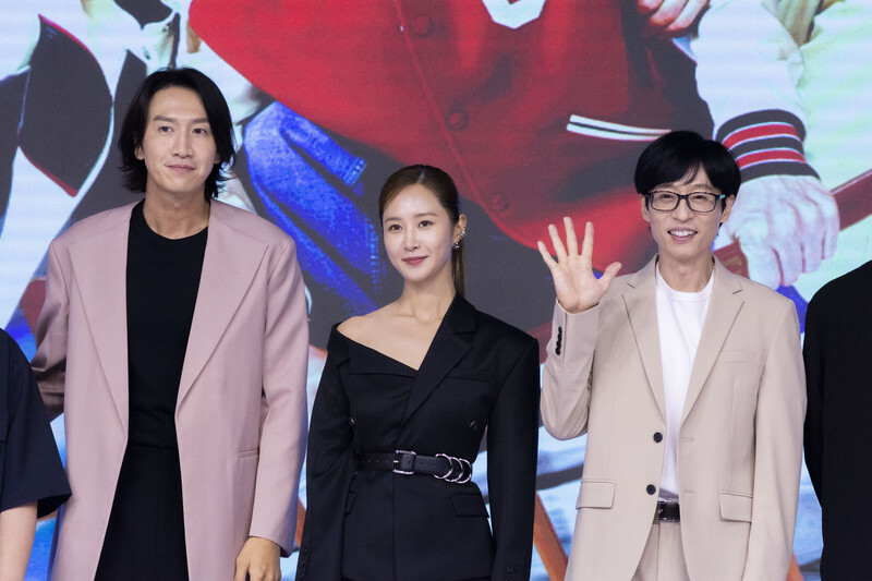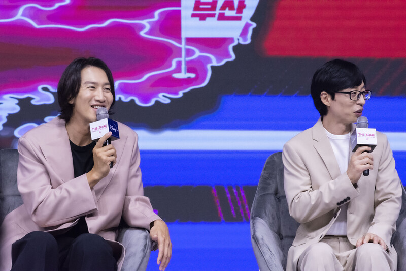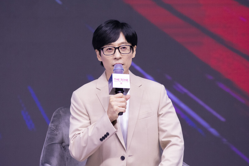These photos taken during the press conference of "The Zone: Season 2" show cast members Kwon Yu-ri, Lee Kwang-soo and Yu Jae-seok.