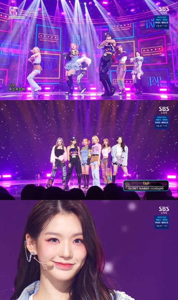 These are screenshots from SBS "Inkigayo," showing girl group Secret Number performing their title track "TAP" at "Inkigayo" on November 20.