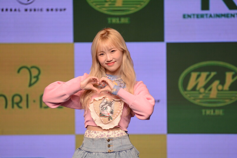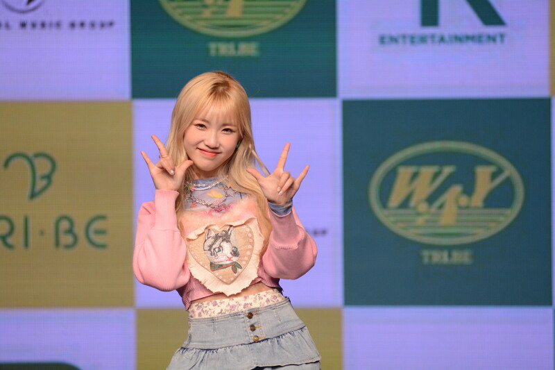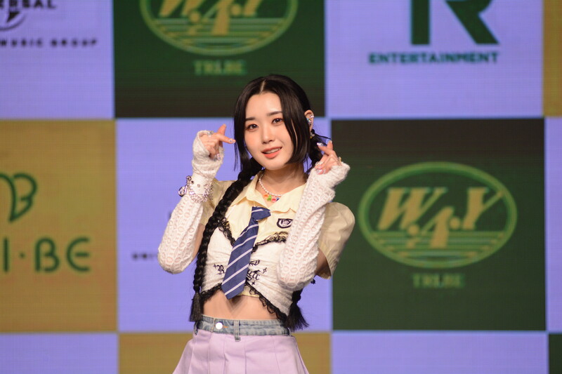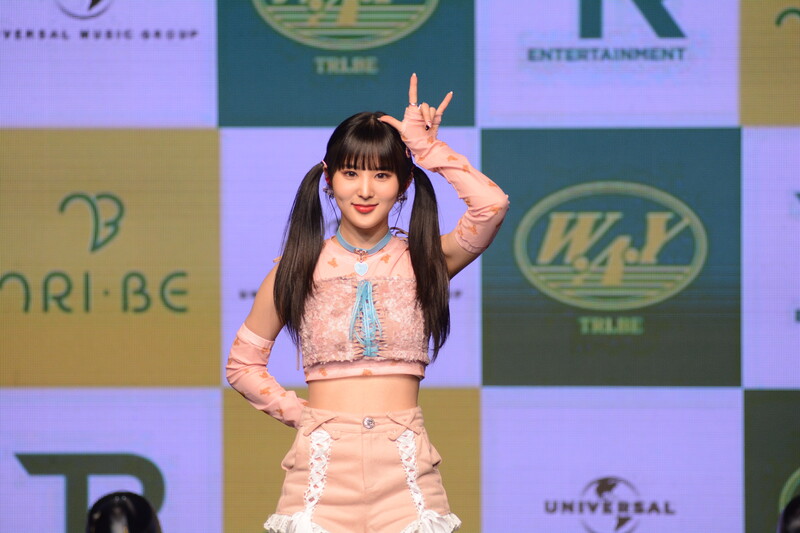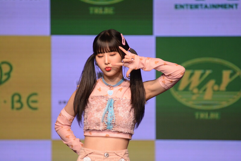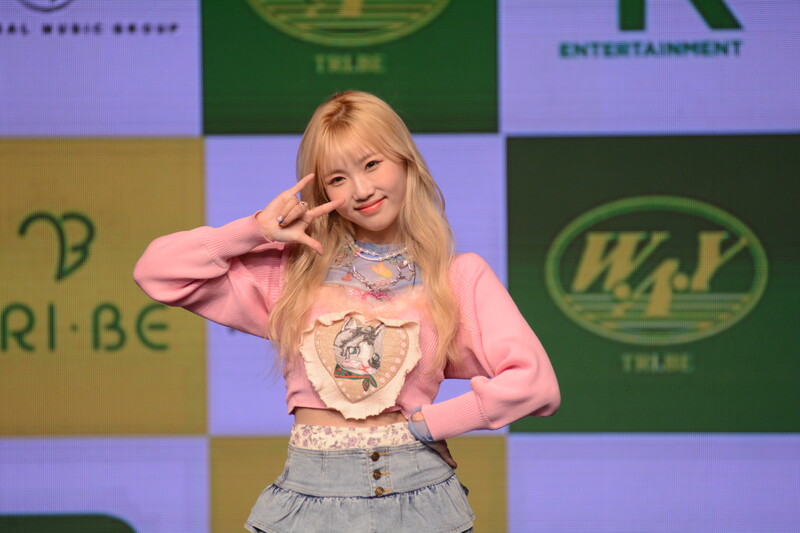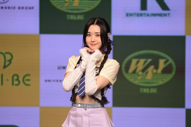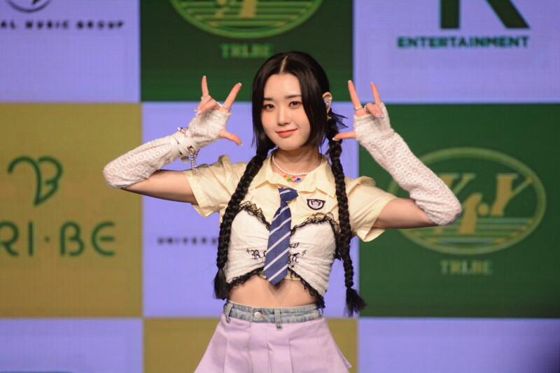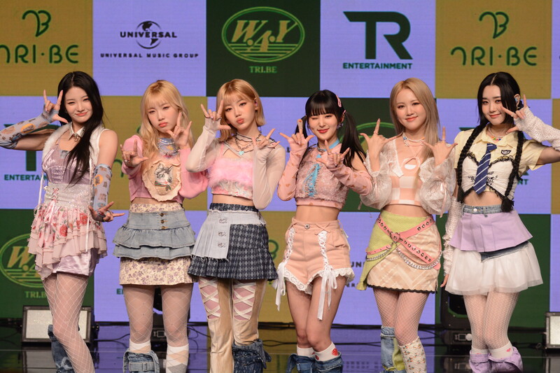 These photos taken during the media showcase of K-pop girl group TRI.BE's second mini album "W.A.Y" show individual and group photos of the members.