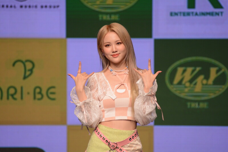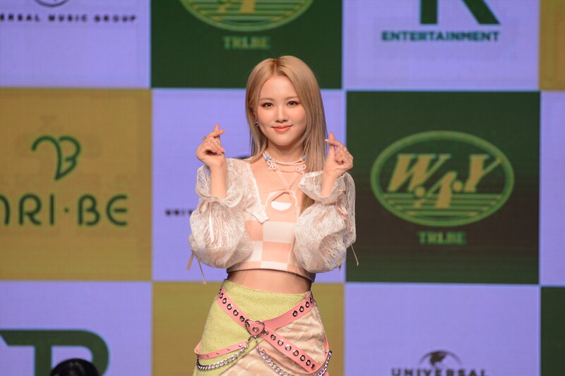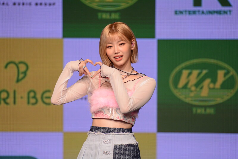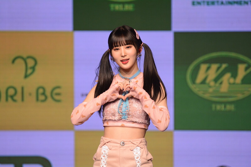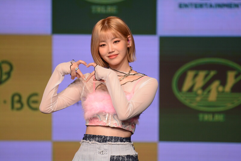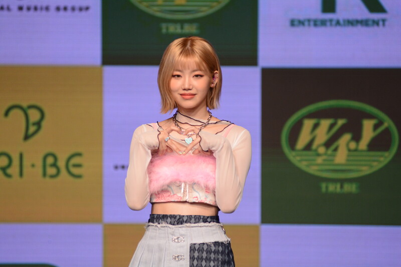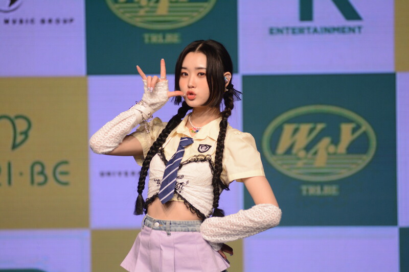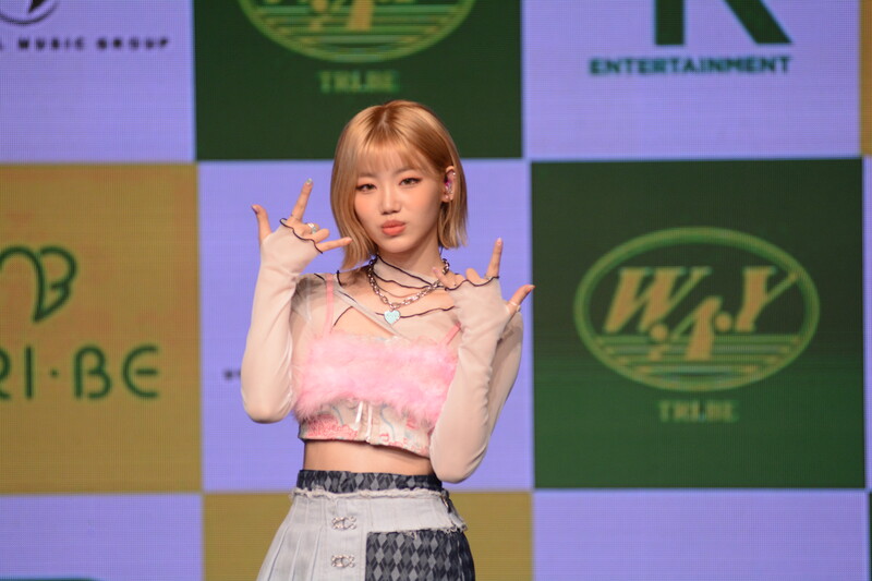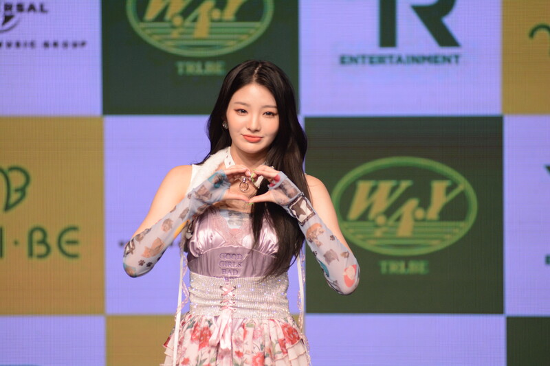 These photos taken during the media showcase of K-pop girl group TRI.BE's second mini album "W.A.Y" show individual and group photos of the members.