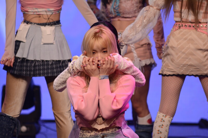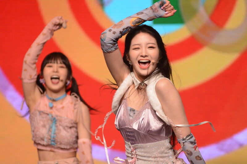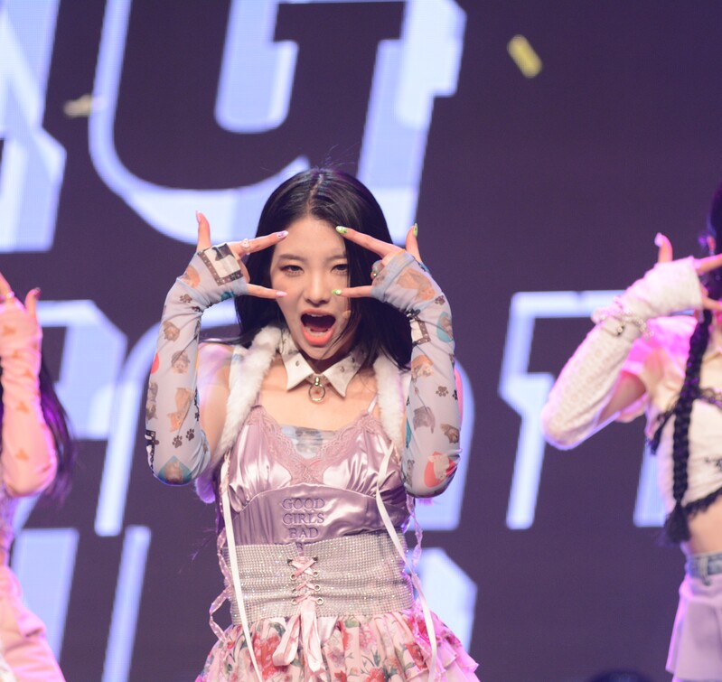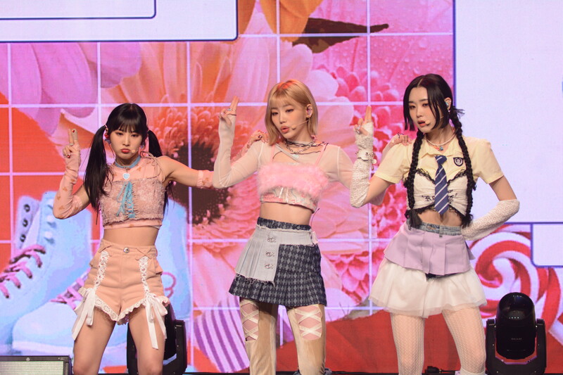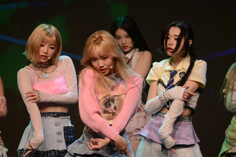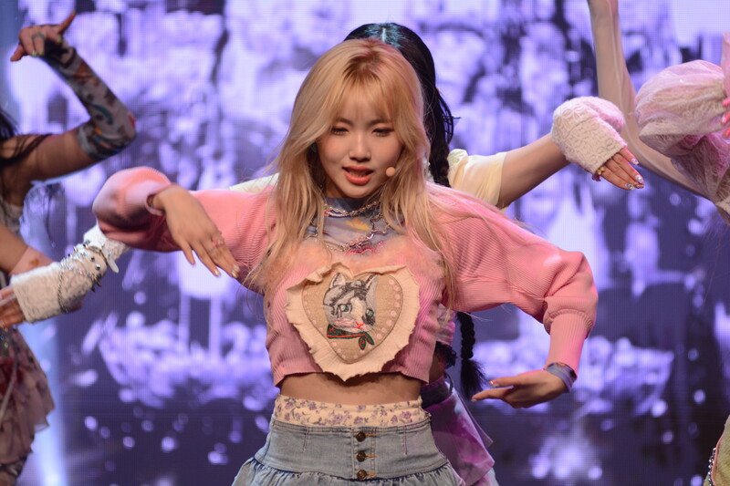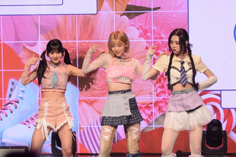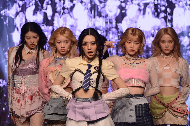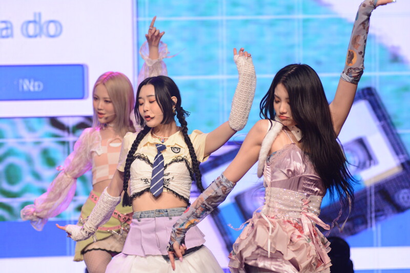 These photos taken during the media showcase of K-pop girl group TRI.BE's second mini album "W.A.Y" show group members performing their title track "We Are Young" and one of the tracks included within the album "Witch."