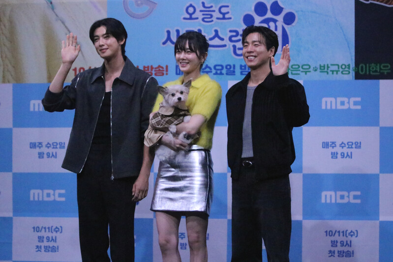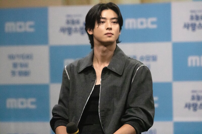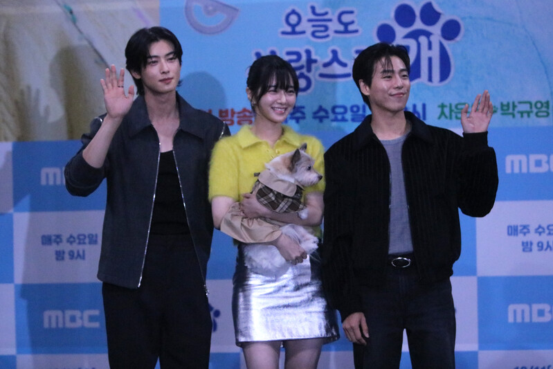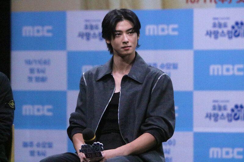 These photos, taken during the press conference of 'A Good Day To Be A Dog', show actor Cha EunWoo and other cast members during the event.