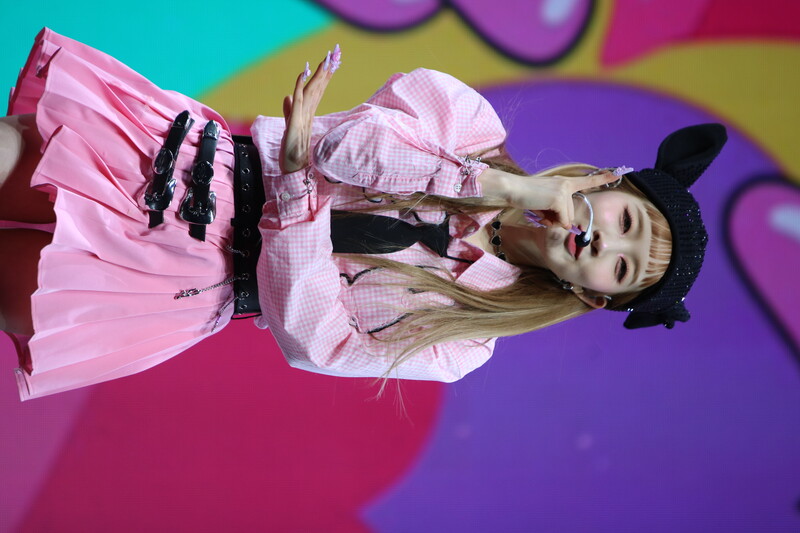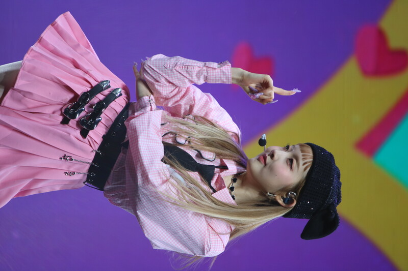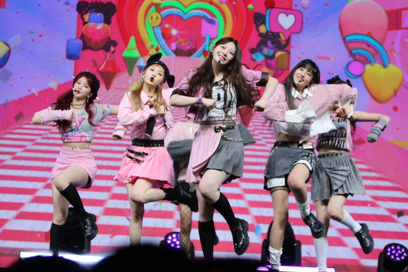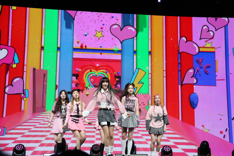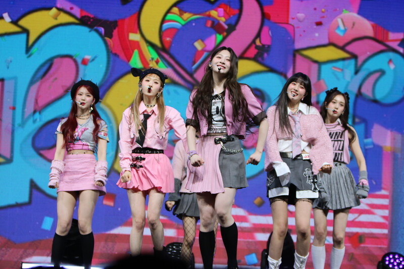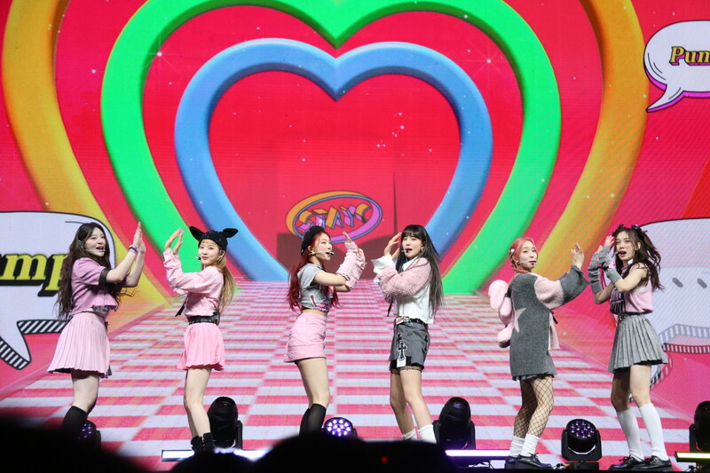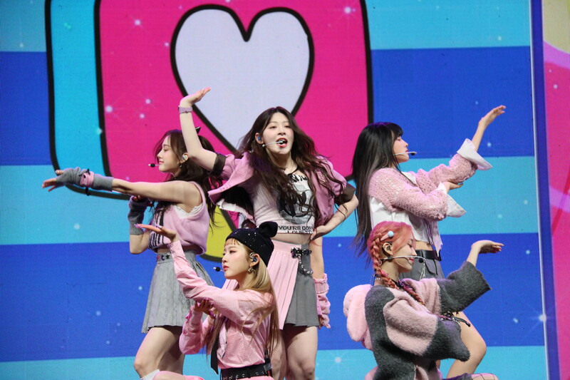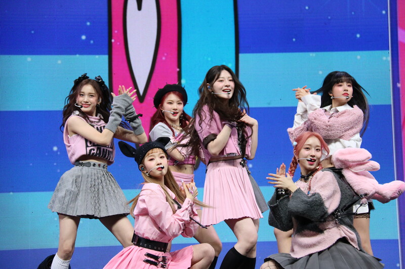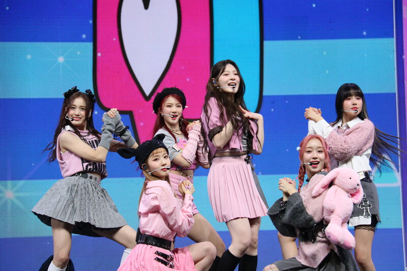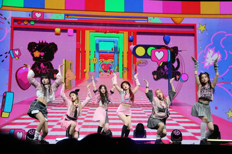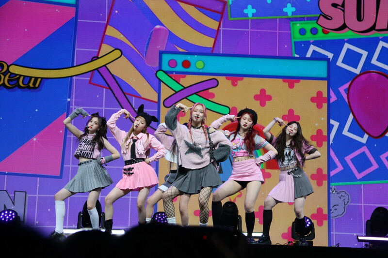 These photos show STAYC performing the song "Teddy Bear" during the media showcase of their 4th single album "Teddy Bear."