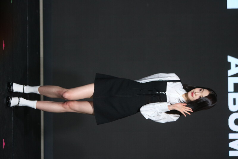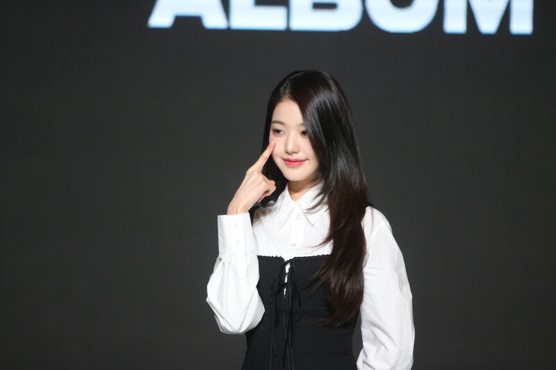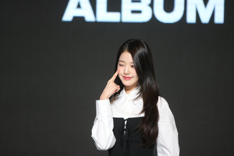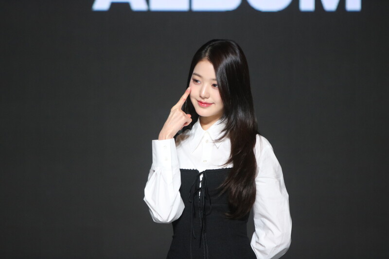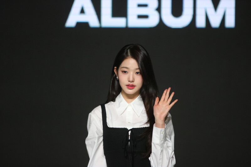 These photos show IVE's Jang Won-young from the media showcase of the six-piece group's first LP "I've IVE." She participated in writing the sixth and eleventh tracks of the group's 11-track project.