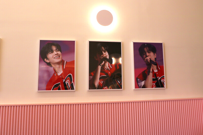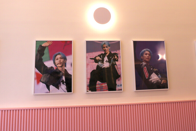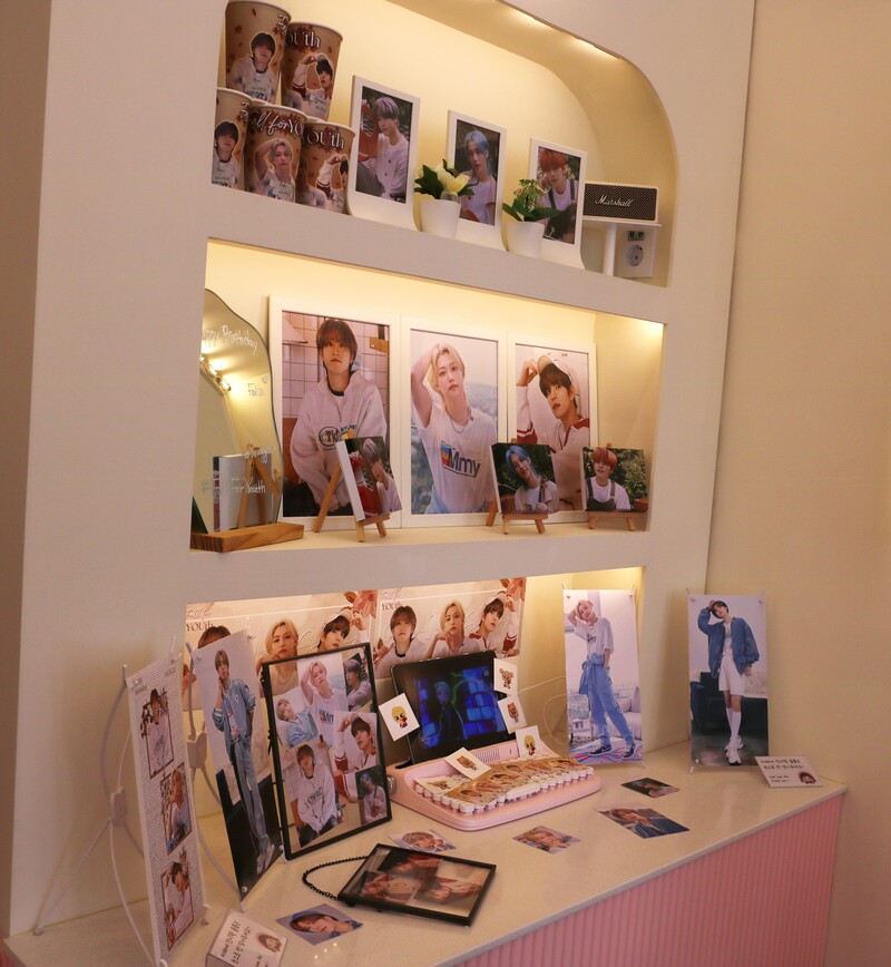 These photos, taken during the birthday cafe event of Han, Felix and Seung Min from Stray Kids, show the birthday cafe event of Han, Felix and Seung Min from Stray Kids.